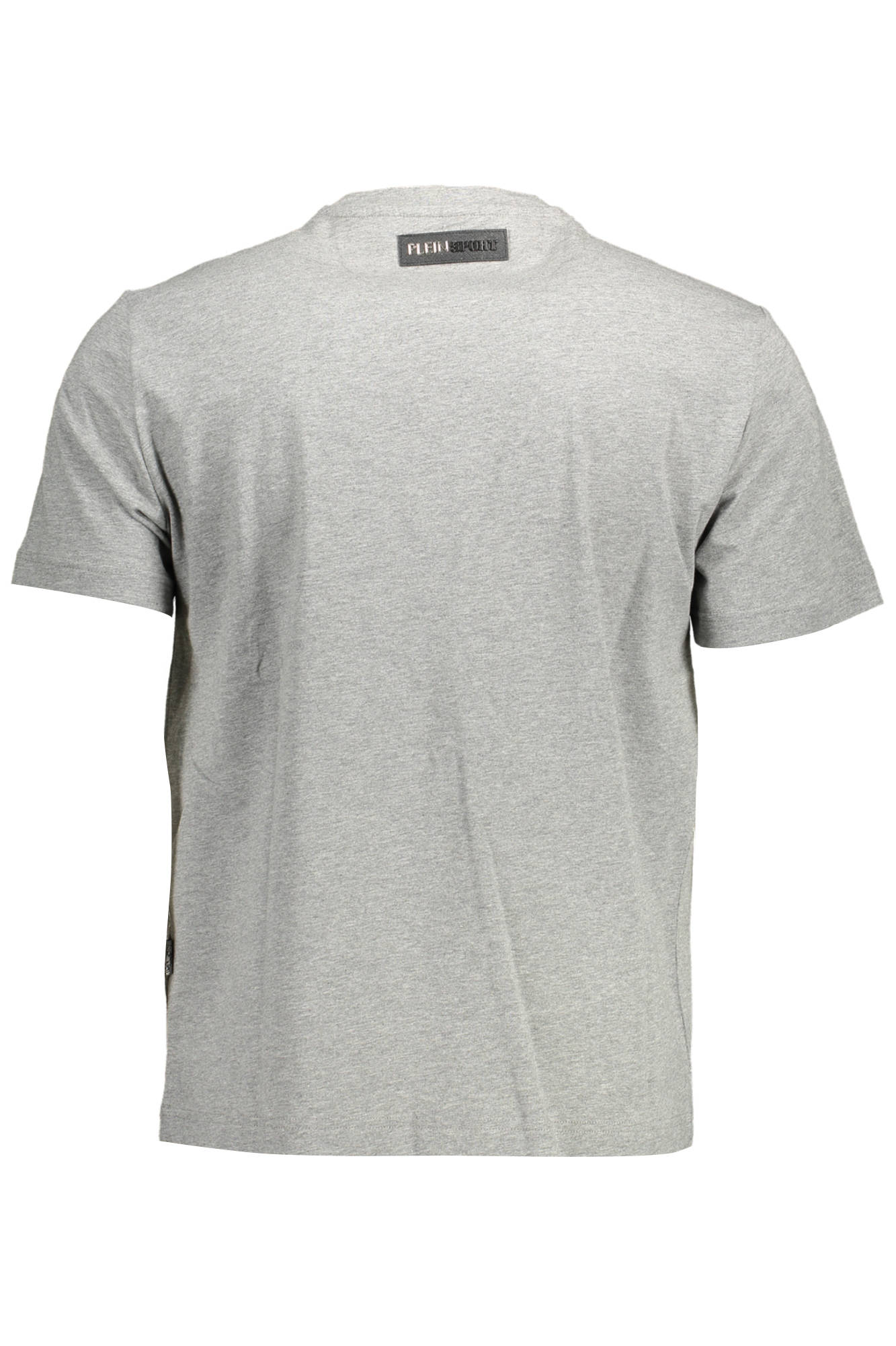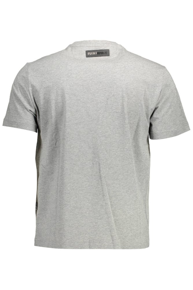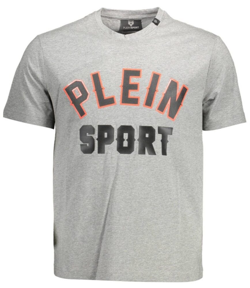T-shirt de manga curta, gola redonda, detalhes contrastantes, aplicação, logotipo.