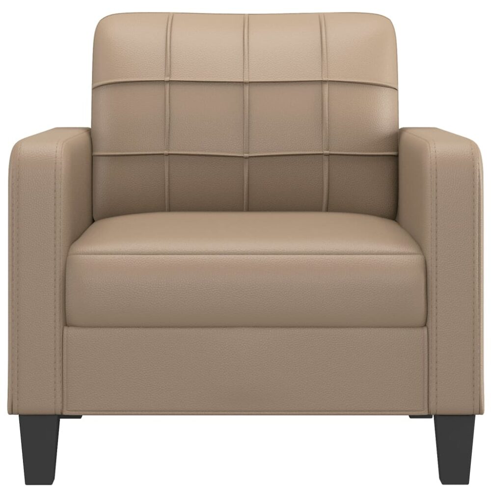 Esta poltrona é um excelente local para conversar, ler, ver TV ou simplesmente relaxar. Destina-se a ser um ponto focal em sua casa. Couro artificial durável: o couro artificial de alta qualidade é um material altamente durável. É resistente a manchas, sendo fácil de limpar com um pano húmido. A superfície suave concede-lhe também um aspeto luxuoso e a beleza do couro genuíno.Estrutura robusta e estável: a estrutura de metal da poltrona assegura robustez e estabilidade.Experiência de assento confortável: a poltrona é altamente confortável com o seu assento, apoios de braços e encosto espessamente acolchoados.Design apelativo: com um design simples, mas moderno, esta poltrona destina-se a ser um destaque na sua divisão.