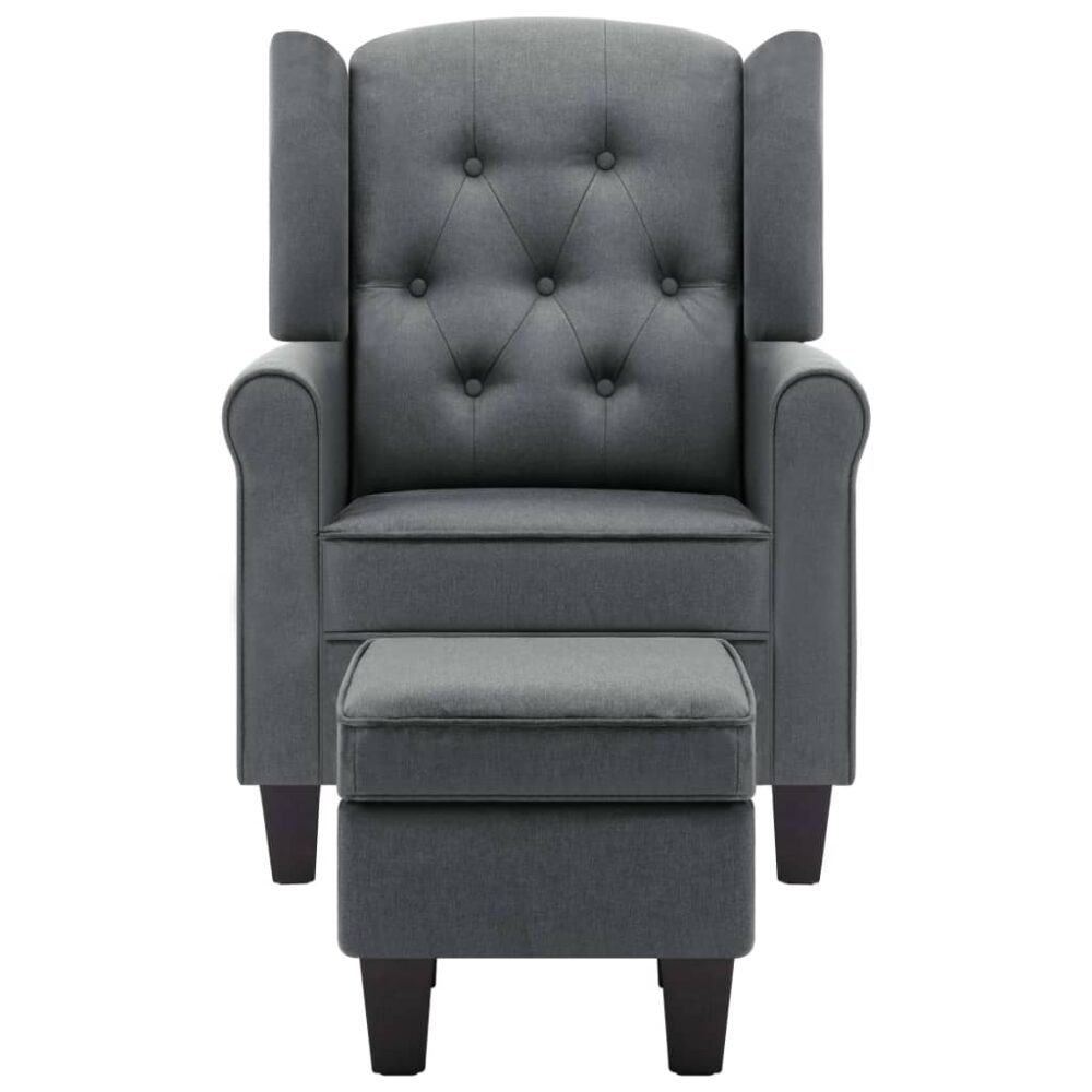 A poltrona com apoio de pés atribui um aspeto moderno à decoração da sua casa e é um complemento perfeito para o seu espaço habitacional. O cadeirão foi estofado com tecido e acolchoado com espuma, tornando-o um espaço de assento forte e macio. A estrutura em madeira oferece uma estabilidade extra a este cadeirão. Esta cadeira lounge apresenta um encosto alto com abas e um almofadão espesso, proporcionando um ótimo conforto. O apoio para pés com enchimento em algodão PP também pode ser utilizado como um assento individual e o seu topo é removível.