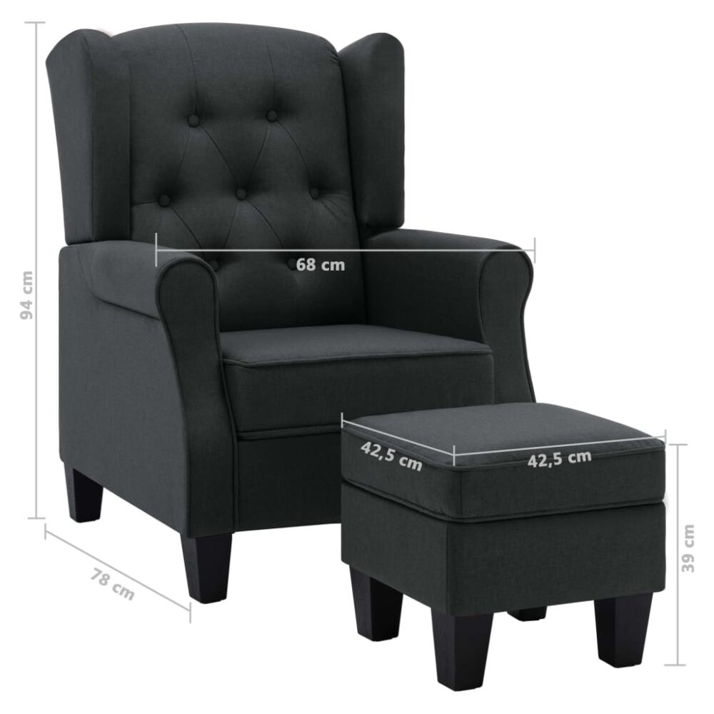 Poltrona com apoio de pés tecido cinzento-escuro - PORTES GRÁTIS