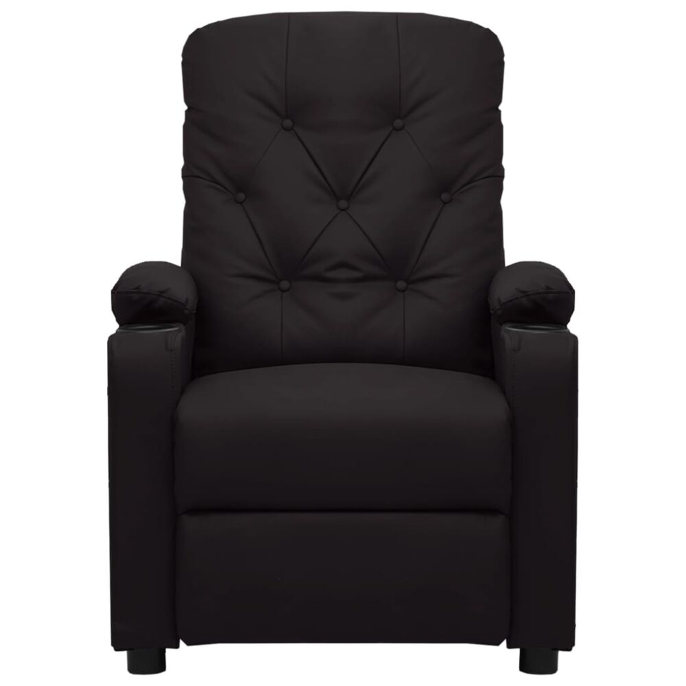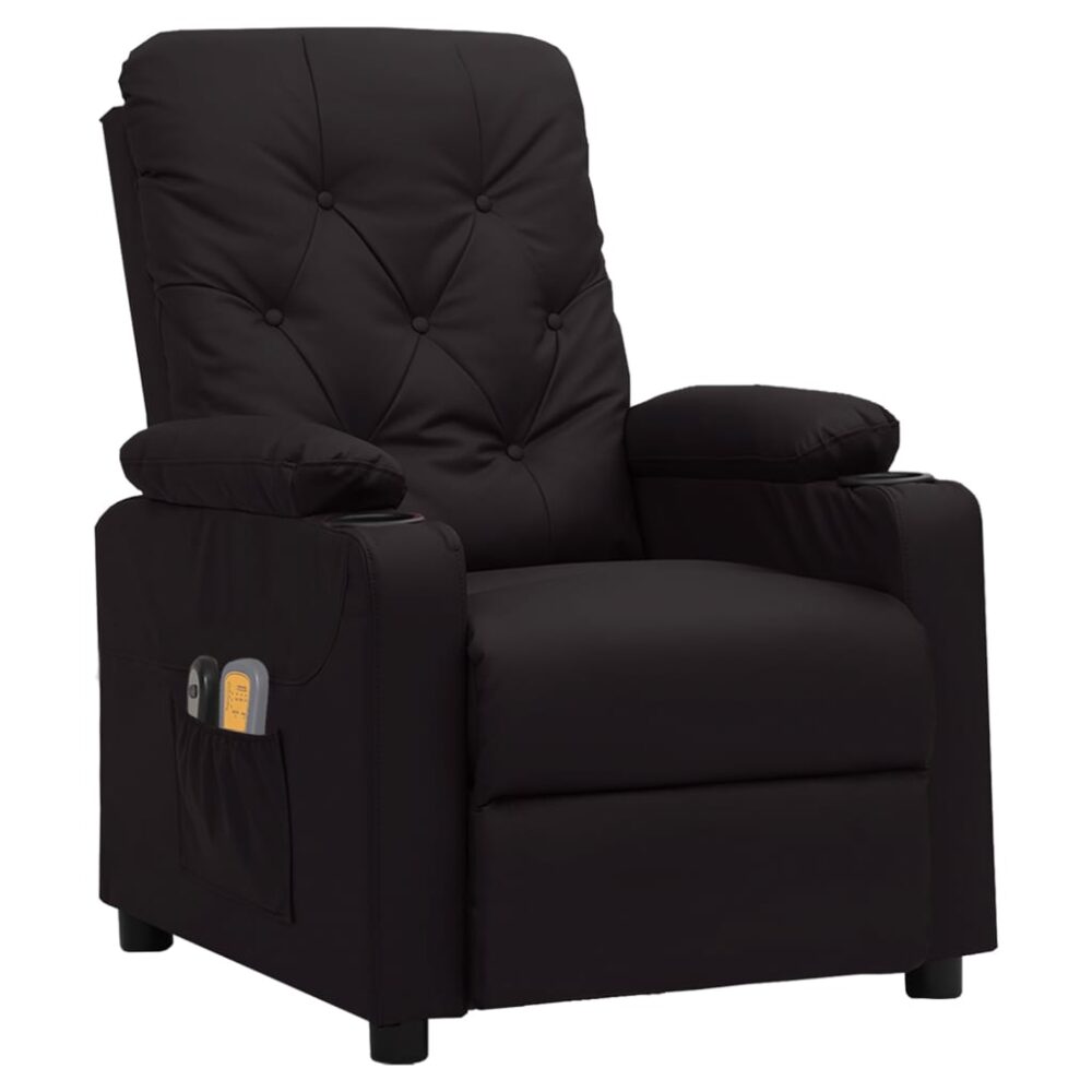 Sente-se e relaxe nesta poltrona de massagens elétrica altamente confortável! Função de reclinação elétrica: a poltrona reclinável está equipada com um motor elétrico para a função de reclinação. Inclui 3 posições de reclinação para que possa facilmente ajustar o encosto e apoio de pés com o controlo manual de 2 botões incluído, de acordo com as suas necessidades de conforto.Função de vibração e aquecimento: os 6 pontos de massagens incluídos permitem-lhe experienciar uma massagem mais bem orientada. O controlo manual incluído permite-lhe ainda escolher diferentes programas de massagem. A função de massagens é alimentada pelo conector USB, mas a fonte de alimentação USB certificada de 5V não está incluída. A função de aquecimento alivia a sua tensão de cintura e promove a circulação sanguínea.Experiência de assento confortável: o assento e encosto espessamente acolchoados e os apoios de braços largos cobertos com couro artificial proporcionam uma sensação quente e aconchegante, fazendo-o sentir-se abraçado enquanto está sentado. O couro artificial é um material altamente durável. É resistente a manchas, sendo fácil de limpar com um pano húmido. A superfície suave concede-lhe também um aspeto luxuoso e a beleza do couro genuíno.Estrutura sólida e estável: a estrutura de madeira e metal proporciona uma estrutura forte e estável. Esta poltrona reclinável é confortável e durável. Este produto não é um brinquedo. Não permita que as crianças brinquem com o aparelho. Este aparelho não se destina a ser utilizado por pessoas (incluindo crianças) com capacidades físicas, sensoriais ou mentais reduzidas, ou com falta de experiência e conhecimentos, a menos que tenham recebido supervisão ou instruções relativas à utilização do aparelho por uma pessoa responsável pela sua segurança.