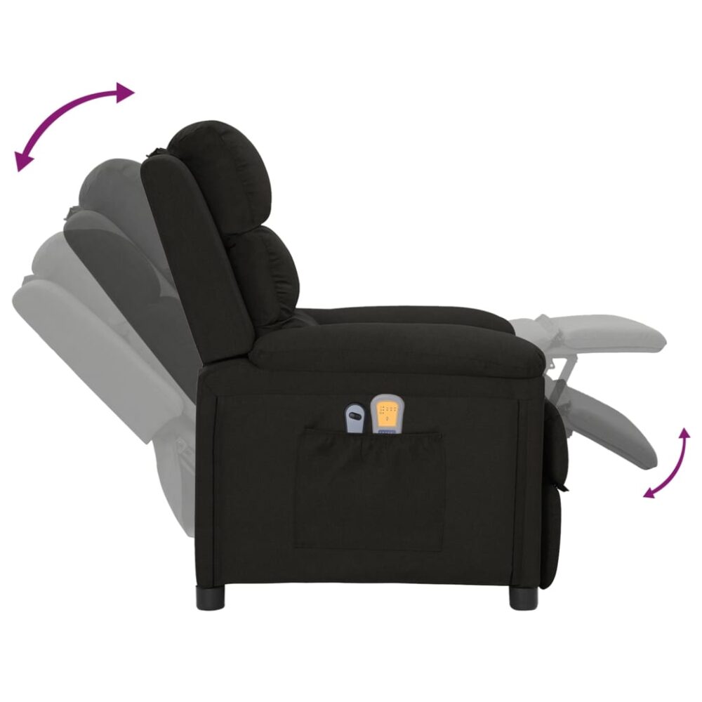 Sente-se e relaxe nesta poltrona de massagens elétrica altamente confortável! Função de reclinação elétrica: a poltrona reclinável está equipada com um motor elétrico para a função de reclinação. Inclui 3 posições de reclinação para que possa facilmente ajustar o encosto e apoio de pés com o controlo manual de 2 botões incluído, de acordo com as suas necessidades de conforto.Função de vibração: os 6 pontos de massagem incluídos permitem que experiencie uma massagem mais bem orientada. O controlo manual incluído permite-lhe ainda escolher diferentes programas de massagem. A função de massagens é alimentada pelo conector USB, mas a fonte de alimentação USB certificada de 5V não está incluída.Experiência de assento confortável: o assento e encosto espessamente acolchoados e os apoios de braços largos cobertos de tecido proporcionam uma sensação quente e aconchegante, fazendo-o sentir-se abraçado enquanto está sentado. O tecido apresenta um aspeto simples e liso, sendo também respirável e durável.Estrutura sólida e estável: a estrutura de madeira e metal proporciona uma estrutura forte e estável. Esta poltrona reclinável é confortável e durável.