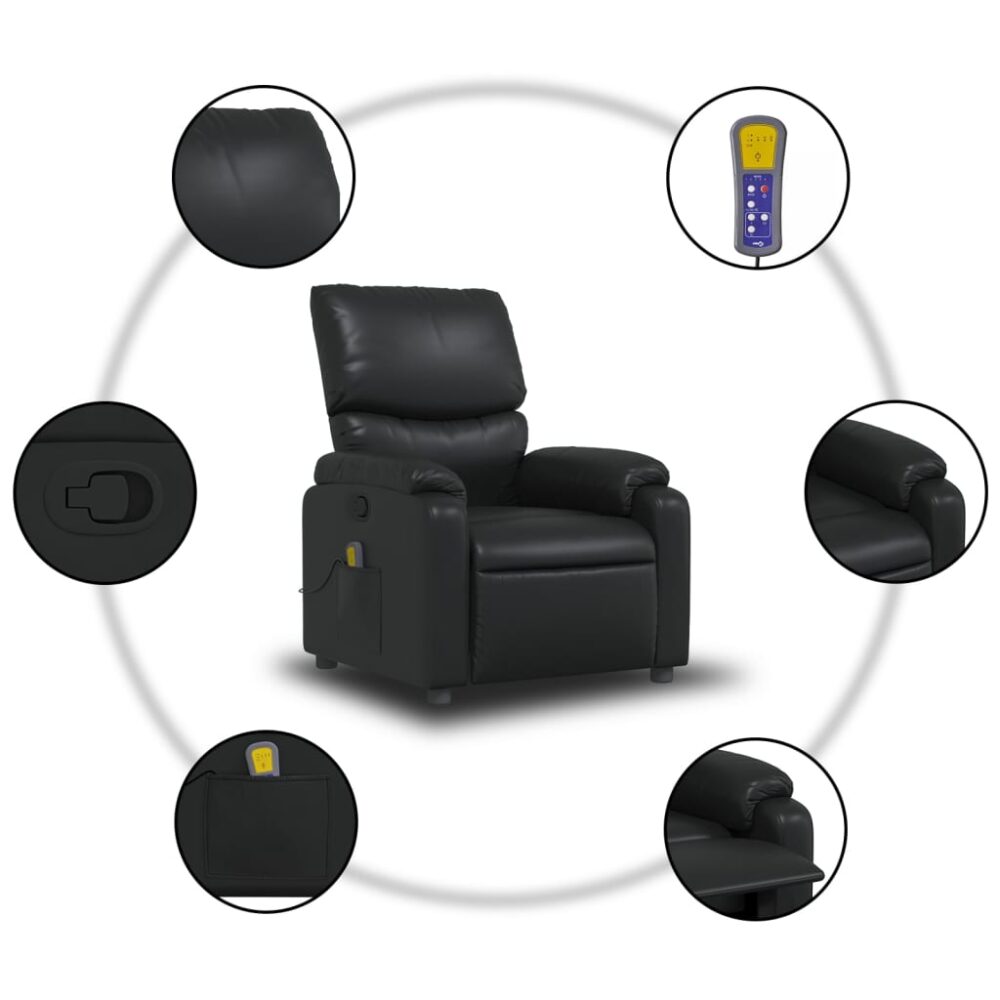 Poltrona de massagens reclinável couro artificial preto - PORTES GRÁTIS
