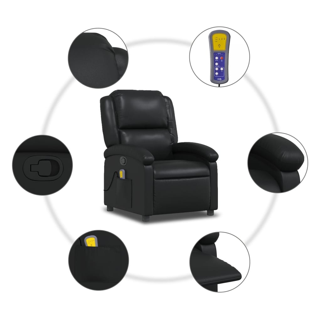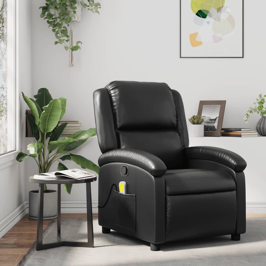 Poltrona de massagens reclinável couro artificial preto - PORTES GRÁTIS