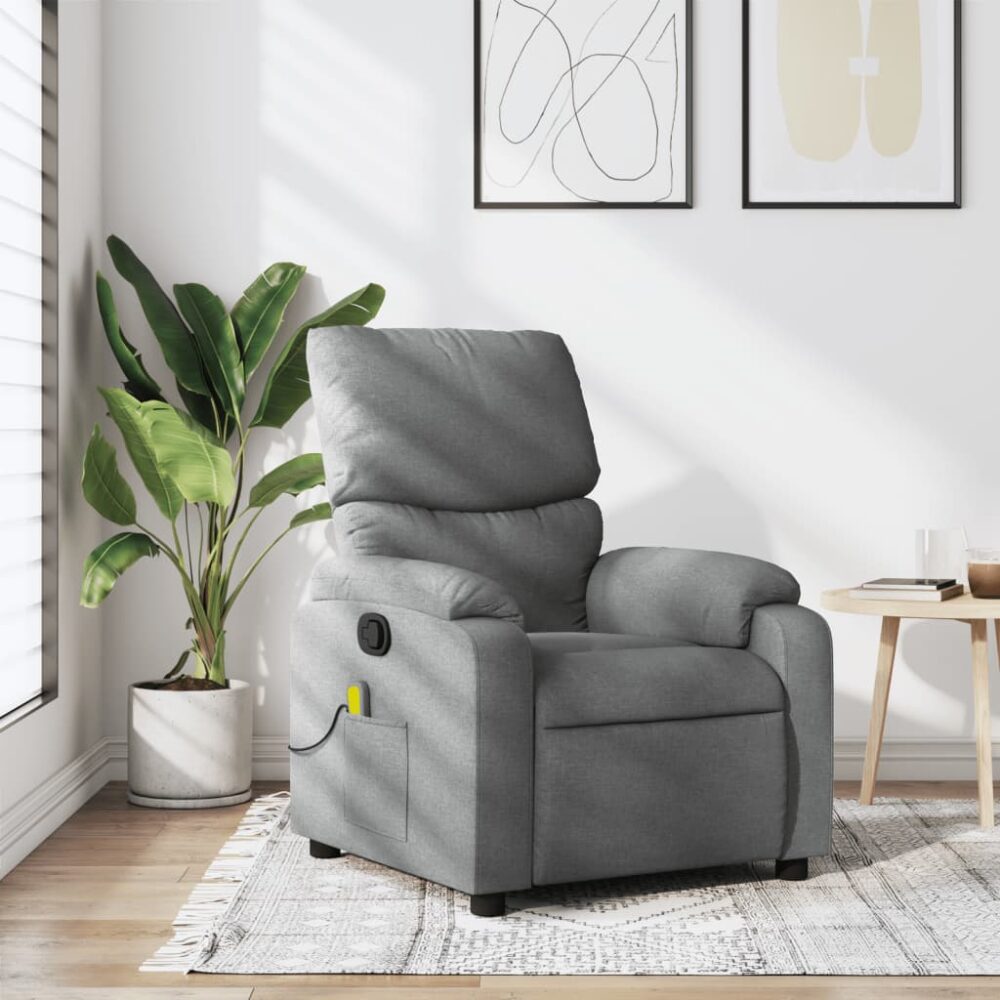 Poltrona de massagens reclinável tecido cinzento-claro - PORTES GRÁTIS