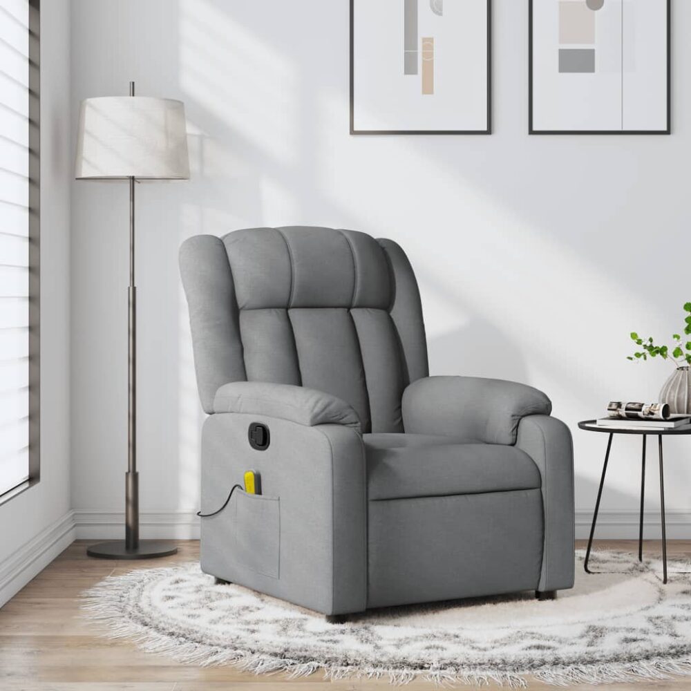 Poltrona de massagens reclinável tecido cinzento-claro - PORTES GRÁTIS