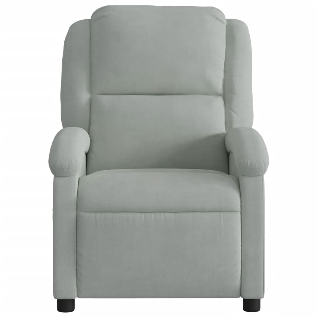 Sente-se e relaxe nesta poltrona de massagens reclinável altamente confortável! Função de reclinação manual: esta poltrona reclinável possui uma pega no lado direito. Pode ajustar manualmente o encosto e o apoio de pés em qualquer posição, de acordo com as suas necessidades de conforto, ao puxar a pega. Este recurso permite uma inclinação máxima de 135 graus. Além disso, o encosto pode voltar para a posição original rápida e facilmente se puxar a pega.Função de vibração: os 6 pontos de massagem incluídos permitem que experiencie uma massagem mais bem orientada. O controlo manual incluído permite-lhe ainda escolher diferentes programas de massagem. A função de massagens é alimentada pelo conector USB, mas a fonte de alimentação USB certificada de 5V não está incluída.Experiência de assento confortável: o assento e encosto espessamente acolchoados e os apoios de braços largos cobertos de veludo proporcionam uma sensação quente e aconchegante, fazendo-o sentir-se abraçado enquanto está sentado. O veludo é um tecido macio e confortável que proporciona uma boa sensação em contacto com a pele.Bolso lateral conveniente: esta poltrona possui um bolso lateral para o seu controlo remoto ou para manter os seus artigos essenciais ao alcance.Estrutura sólida e estável: a estrutura feita de madeira e metal proporciona uma estrutura forte e estável. Esta poltrona reclinável é confortável e durável.