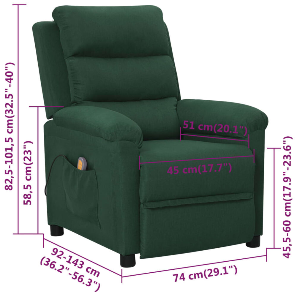 Poltrona de massagens tecido verde-escuro - PORTES GRÁTIS