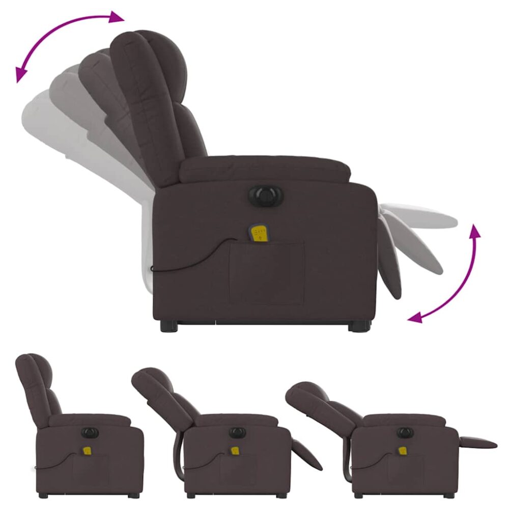Poltrona elétrica elevatória massagens tecido castanho-escuro - PORTES GRÁTIS