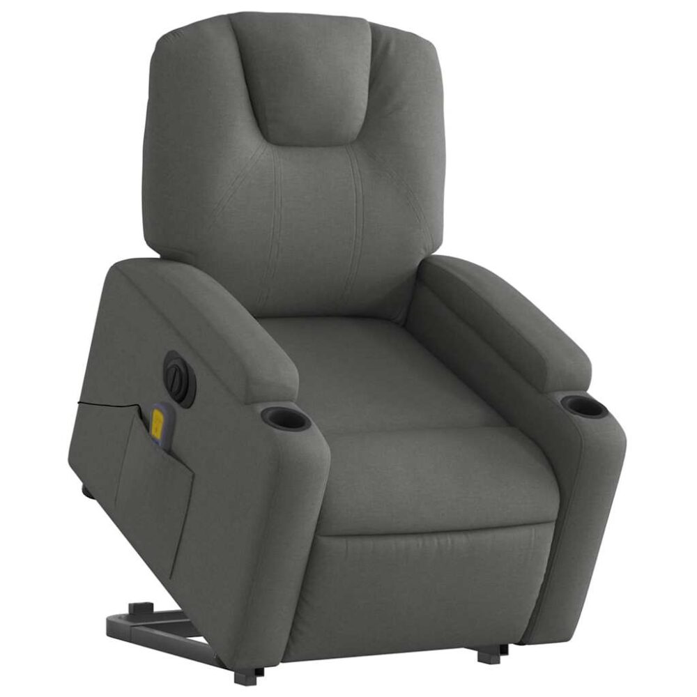 Sente-se e relaxe nesta poltrona reclinável, elevatória e elétrica de massagens altamente confortável! Função elevatória: a poltrona reclinável para idosos está equipada com um motor elétrico para a função de elevação. Graças à função que empurra toda a poltrona para cima, pode facilmente levantar-se sem criar desconforto às suas costas e joelhos com o simples premir de um botão.Função de reclinação elétrica: esta poltrona reclinável está também equipada com um motor elétrico que permite ajustar automaticamente o encosto e o apoio de pés para qualquer posição, de acordo com as suas necessidades de conforto, com um simples toque no botão existente na parte lateral. Este recurso permite uma inclinação máxima de 135 graus. Além disso, o encosto pode voltar para a posição original rápida e facilmente se premir o botão.Função de vibração: os 6 pontos de massagem permitem que experiencie uma massagem mais bem orientada. O controlo manual incluído permite-lhe ainda escolher diferentes programas de massagem. A função de massagens é alimentada pelo conector USB que exige uma fonte de alimentação USB certificada de 5V (não incluída).Experiência de assento confortável: o assento e encosto espessamente acolchoados e os apoios de braços largos cobertos de tecido proporcionam uma sensação quente e aconchegante, fazendo-o sentir-se abraçado enquanto está sentado. O tecido apresenta um aspeto simples e liso, sendo também respirável e durável.Suportes de copos e bolso lateral convenientes: esta poltrona possui dois convenientes suportes de copos para as suas bebidas e um bolso lateral para o seu comando ou para manter os seus artigos essenciais ao alcance.Estrutura sólida e estável: a estrutura feita de madeira e metal proporciona uma estrutura forte e estável. Esta poltrona reclinável é confortável e durável.