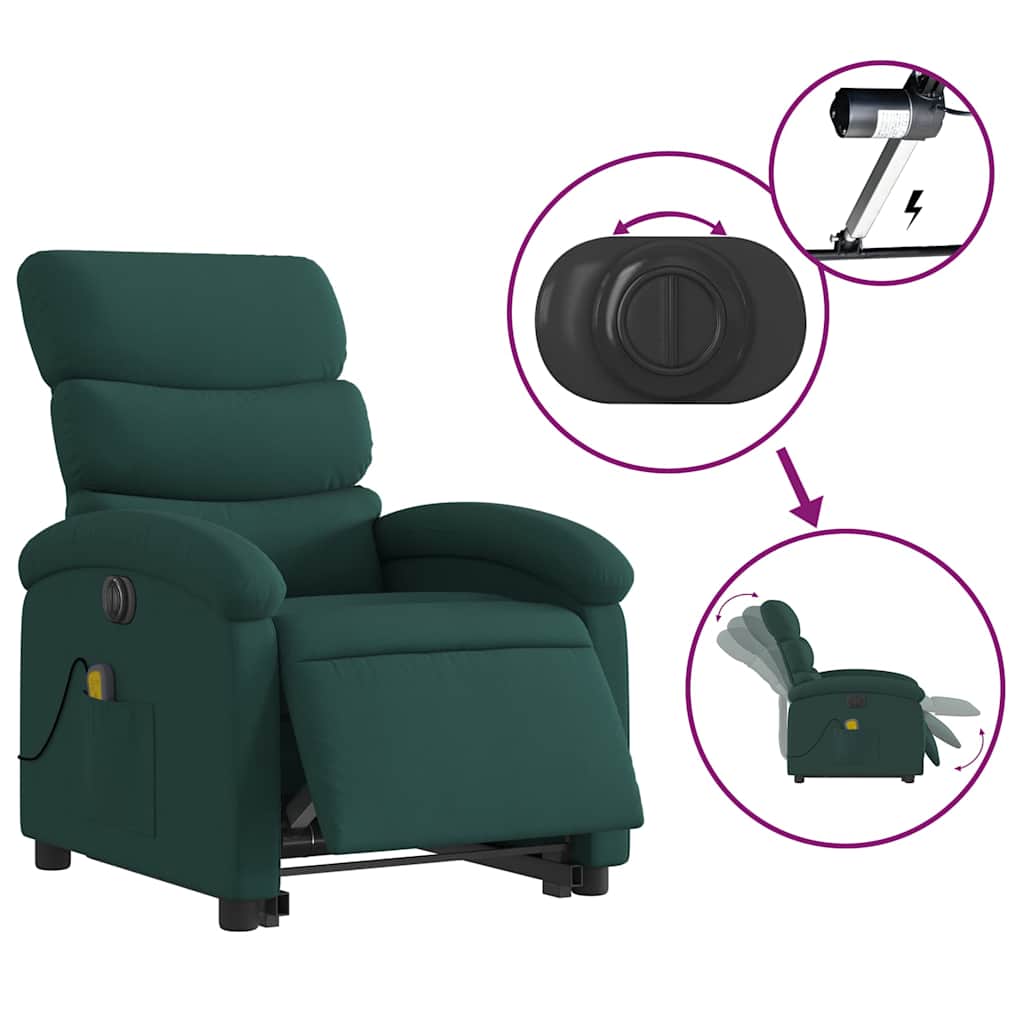 Poltrona elétrica elevatória massagens tecido verde-escuro - PORTES GRÁTIS