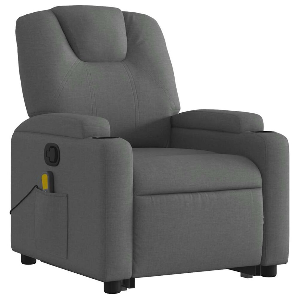 Sente-se e relaxe nesta poltrona de massagens reclinável elevatória altamente confortável! Função elevatória: a poltrona reclinável para idosos está equipada com um motor elétrico para a função de elevação. Graças à função que empurra toda a poltrona para cima, pode facilmente levantar-se sem criar desconforto às suas costas e joelhos com o simples premir de um botão.Função de reclinação manual: esta poltrona reclinável possui uma pega no lado direito. Pode ajustar manualmente o encosto e o apoio de pés em qualquer posição, de acordo com as suas necessidades de conforto, ao puxar a pega. Este recurso permite uma inclinação máxima de 135 graus. Além disso, o encosto pode voltar para a posição original rápida e facilmente se puxar a pega.Função de vibração: os 6 pontos de massagem permitem que experiencie uma massagem mais bem orientada. O controlo manual incluído permite-lhe ainda escolher diferentes programas de massagem. A função de massagens é alimentada pelo conector USB que exige uma fonte de alimentação USB certificada de 5V (não incluída).Experiência de assento confortável: o assento e encosto espessamente acolchoados e os apoios de braços largos cobertos de tecido proporcionam uma sensação quente e aconchegante, fazendo-o sentir-se abraçado enquanto está sentado. O tecido apresenta um aspeto simples e liso, sendo também respirável e durável.Suportes de copos e bolso lateral convenientes: esta poltrona possui dois convenientes suportes de copos para as suas bebidas e um bolso lateral para o seu comando ou para manter os seus artigos essenciais ao alcance.Estrutura sólida e estável: a estrutura feita de madeira e metal proporciona uma estrutura forte e estável. Esta poltrona reclinável é confortável e durável.