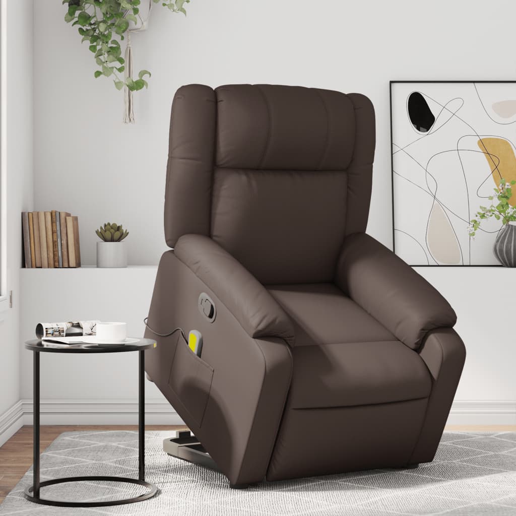 Poltrona massagens reclinável elevatória couro artif. castanho - PORTES GRÁTIS