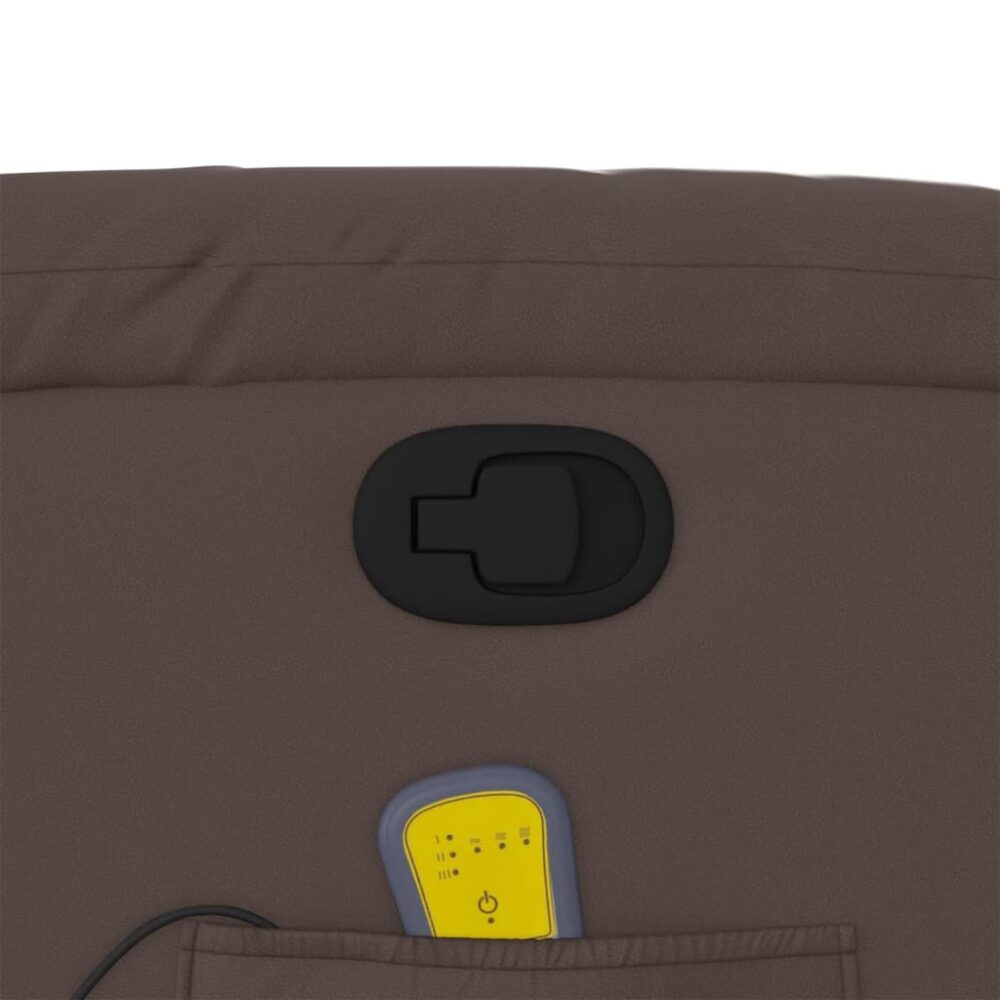 Sente-se e relaxe nesta poltrona de massagens reclinável elevatória altamente confortável! Função elevatória: a poltrona reclinável para idosos está equipada com um motor elétrico para a função de elevação. Graças à função que empurra toda a poltrona para cima, pode facilmente levantar-se sem criar desconforto às suas costas e joelhos com o simples premir de um botão.Função de reclinação manual: esta poltrona reclinável possui uma pega no lado direito. Pode ajustar manualmente o encosto e o apoio de pés em qualquer posição, de acordo com as suas necessidades de conforto, ao puxar a pega. Este recurso permite uma inclinação máxima de 135 graus. Além disso, o encosto pode voltar para a posição original rápida e facilmente se puxar a pega.Função de vibração: os 6 pontos de massagem permitem que experiencie uma massagem mais bem orientada. O controlo manual incluído permite-lhe ainda escolher diferentes programas de massagem. A função de massagens é alimentada pelo conector USB que exige uma fonte de alimentação USB certificada de 5V (não incluída).Experiência de assento confortável: o assento e encosto espessamente acolchoados e os apoios de braços largos cobertos com couro artificial proporcionam uma sensação quente e aconchegante, fazendo-o sentir-se abraçado enquanto está sentado. O couro artificial é um material altamente durável. É resistente a manchas, sendo fácil de limpar com um pano húmido. A superfície suave concede-lhe também um aspeto luxuoso e a beleza do couro genuíno.Bolso lateral conveniente: esta poltrona possui um bolso lateral para o seu controlo remoto ou para manter os seus artigos essenciais ao alcance.Estrutura sólida e estável: a estrutura feita de madeira e metal proporciona uma estrutura forte e estável. Esta poltrona reclinável é confortável e durável. Máximo 110 kg por assento. Este aparelho pode ser utilizado por crianças a partir dos 8 anos de idade e por pessoas com capacidades físicas, sensoriais ou mentais reduzidas, ou com falta de experiência e conhecimentos, desde que tenham recebido supervisão ou instruções relativas à utilização do aparelho de forma segura e compreendam os perigos envolvidos. As crianças não devem brincar com o aparelho. A limpeza e a manutenção a ser efetuada pelo utilizador não deve ser levada a cabo por crianças sem supervisão.