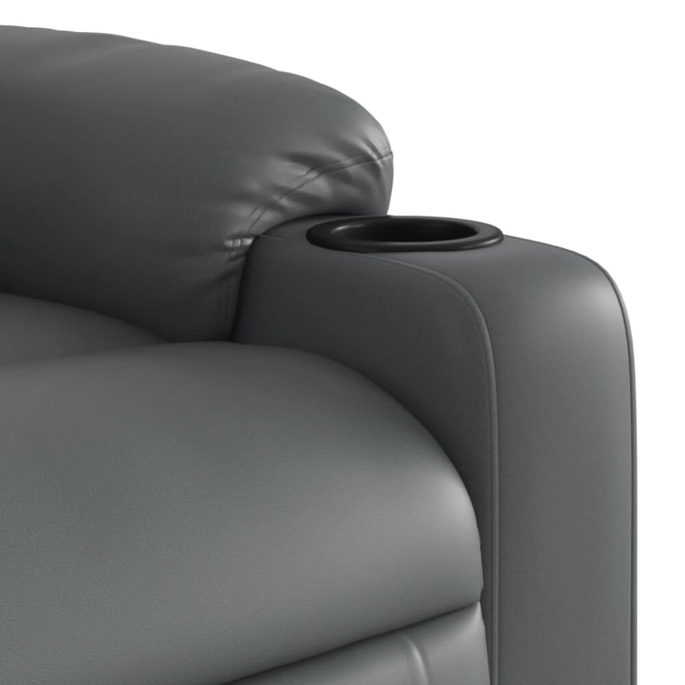 Poltrona massagens reclinável elevatória couro artif. cinzento - PORTES GRÁTIS