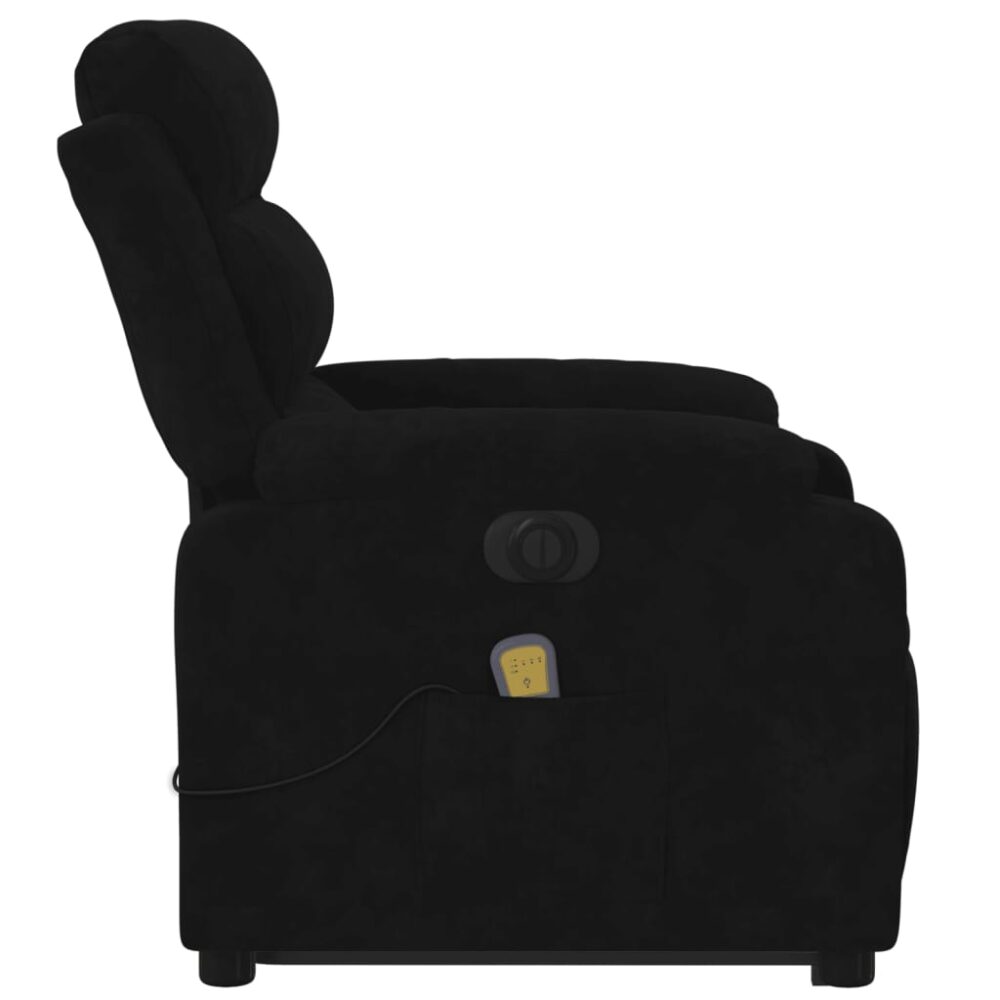 Sente-se e relaxe nesta poltrona reclinável, elevatória e elétrica de massagens altamente confortável! Função elevatória: a poltrona reclinável para idosos está equipada com um motor elétrico para a função de elevação. Graças à função que empurra toda a poltrona para cima, pode facilmente levantar-se sem criar desconforto às suas costas e joelhos com o simples premir de um botão.Função de reclinação elétrica: esta poltrona reclinável está também equipada com um motor elétrico que permite ajustar automaticamente o encosto e o apoio de pés para qualquer posição, de acordo com as suas necessidades de conforto, com um simples toque no botão existente na parte lateral. Este recurso permite uma inclinação máxima de 135 graus. Além disso, o encosto pode voltar para a posição original rápida e facilmente se premir o botão.Função de vibração: os 6 pontos de massagem permitem que experiencie uma massagem mais bem orientada. O controlo manual incluído permite-lhe ainda escolher diferentes programas de massagem. A função de massagens é alimentada pelo conector USB que exige uma fonte de alimentação USB certificada de 5V (não incluída).Experiência de assento confortável: o assento e encosto espessamente acolchoados e os apoios de braços largos cobertos de veludo proporcionam uma sensação quente e aconchegante, fazendo-o sentir-se abraçado enquanto está sentado. O veludo é um tecido macio e confortável que proporciona uma boa sensação em contacto com a pele.Bolso lateral conveniente: esta poltrona possui um bolso lateral para o seu controlo remoto ou para manter os seus artigos essenciais ao alcance.Estrutura sólida e estável: a estrutura feita de madeira e metal proporciona uma estrutura forte e estável. Esta poltrona reclinável é confortável e durável. Máximo 110 kg por assento. Este aparelho pode ser utilizado por crianças a partir dos 8 anos de idade e por pessoas com capacidades físicas, sensoriais ou mentais reduzidas, ou com falta de experiência e conhecimentos, desde que tenham recebido supervisão ou instruções relativas à utilização do aparelho de forma segura e compreendam os perigos envolvidos. As crianças não devem brincar com o aparelho. A limpeza e a manutenção a ser efetuada pelo utilizador não deve ser levada a cabo por crianças sem supervisão.