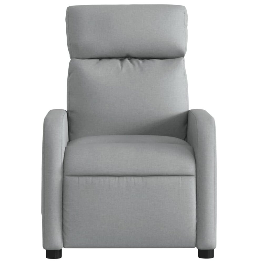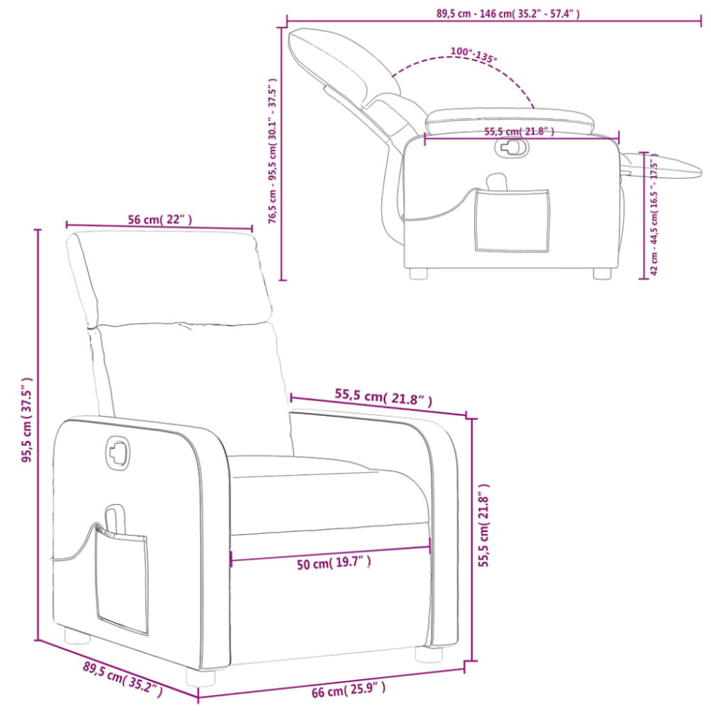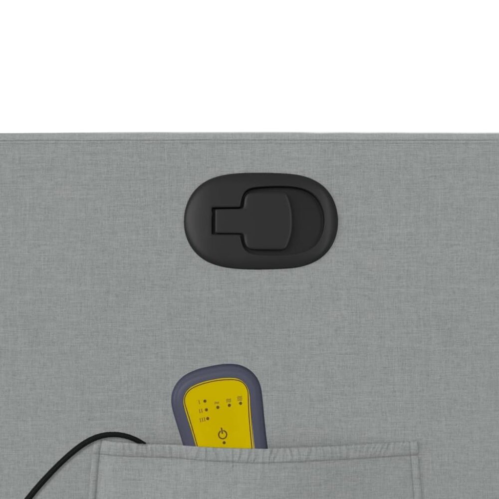Recoste-se e relaxe nesta confortável poltrona reclinável com massagem! Função de reclinação manual: Esta poltrona reclinável possui uma alça no lado direito. Você pode ajustar manualmente o apoio para os pés e o encosto para qualquer posição, de acordo com seu conforto, com um simples puxão na alça. Este recurso permite uma inclinação máxima de 135 graus. Além disso, o encosto pode retornar rapidamente à posição original com um simples puxão na alça.Função de vibração: Os 6 pontos de massagem permitem que você experimente uma massagem mais direcionada. Além disso, o controle manual incluído permite que você escolha diferentes programas de massagem. A função de massagem é alimentada pelo conector USB, mas a fonte de alimentação USB de 5 V certificada não está incluída.Experiência confortável no assento: O assento, o encosto e os amplos apoios de braços revestidos em tecido proporcionam uma sensação aconchegante e acolhedora, fazendo você se sentir acolhido enquanto está sentado. O tecido apresenta um visual simples e clean, além de ser respirável e durável.Bolso lateral prático: Esta poltrona possui um bolso lateral para o seu controle remoto ou para guardar seus itens essenciais facilmente ao alcance.Estrutura sólida e estável: A estrutura de madeira e metal proporciona uma estrutura forte e estável. Esta poltrona reclinável é confortável e durável. Ter em atenção o risco de fogos abertos e outras fontes de calor forte nas proximidades do produto. Máximo de 110 kg por assento. Este produto é alimentado por CC 5V, mas a fonte de alimentação USB de 5V certificada não está incluída. Uma tensão mais elevada pode provocar um sobreaquecimento e resultar em danos no dispositivo e no risco potencial de sobreaquecimento e incêndio.