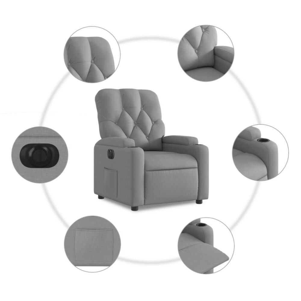 Poltrona reclinável elétrica tecido cinzento-claro - PORTES GRÁTIS