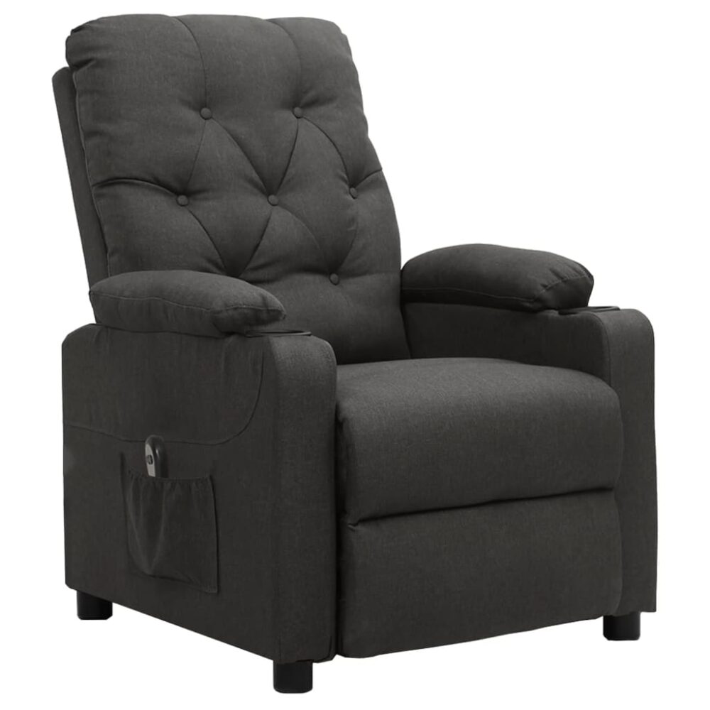 Poltrona reclinável elétrica tecido cinzento-escuro - PORTES GRÁTIS