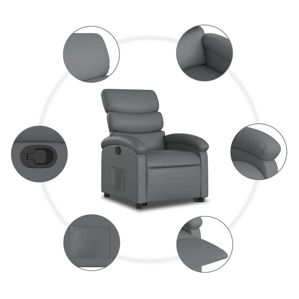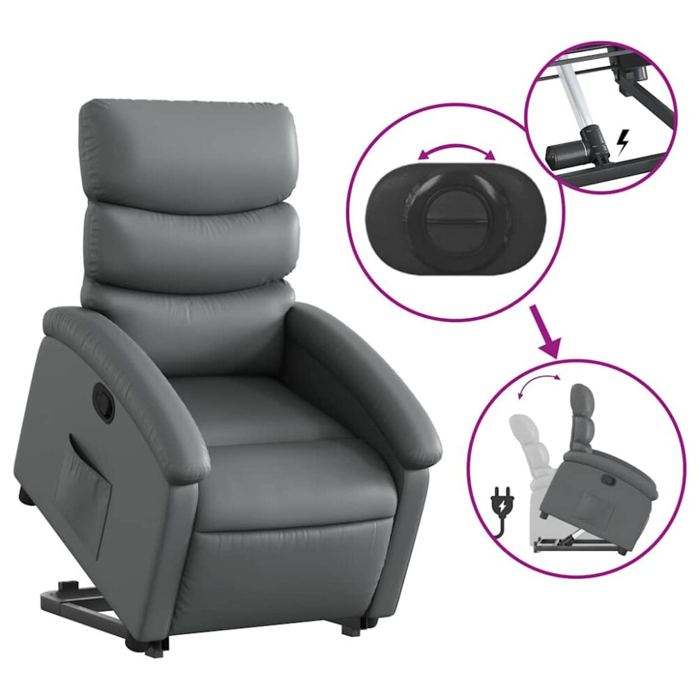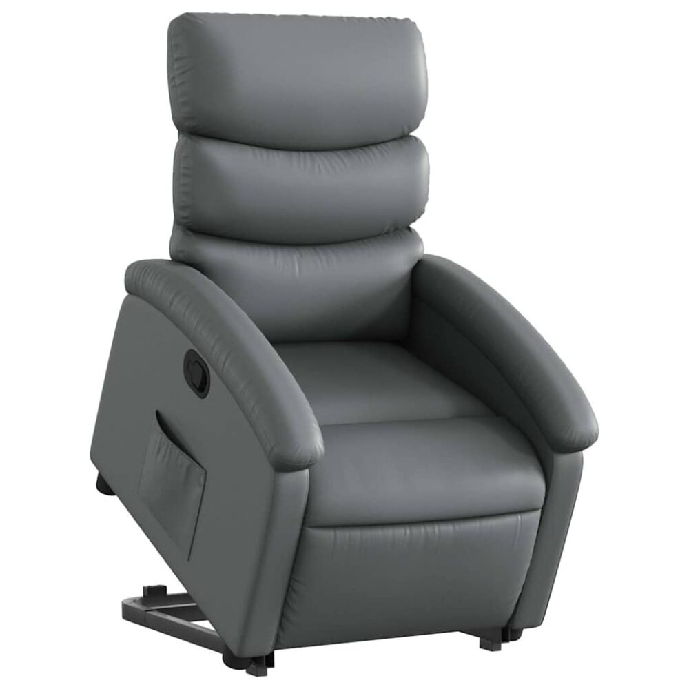 Sente-se e relaxe nesta poltrona reclinável elevatória altamente confortável! Função elevatória: a poltrona reclinável para idosos está equipada com um motor elétrico para a função de elevação. Graças à função que empurra toda a poltrona para cima, pode facilmente levantar-se sem criar desconforto às suas costas e joelhos com o simples premir de um botão.Função de reclinação manual: esta poltrona reclinável possui uma pega no lado direito. Pode ajustar manualmente o encosto e o apoio de pés em qualquer posição, de acordo com as suas necessidades de conforto, ao puxar a pega. Este recurso permite uma inclinação máxima de 135 graus. Além disso, o encosto pode voltar para a posição original rápida e facilmente se puxar a pega.Experiência de assento confortável: o assento e encosto espessamente acolchoados e os apoios de braços largos cobertos com couro artificial proporcionam uma sensação aconchegante, fazendo-o sentir-se abraçado enquanto está sentado. O couro artificial é um material altamente durável. É resistente a manchas, sendo fácil de limpar com um pano húmido. A superfície suave concede-lhe também um aspeto luxuoso e a beleza do couro genuíno.Bolso lateral conveniente: esta poltrona possui um bolso lateral para que possa manter os seus artigos essenciais ao seu alcance.Estrutura sólida e estável: a estrutura feita de madeira e metal proporciona uma estrutura forte e estável. Esta poltrona reclinável é confortável e durável. Máximo 110 kg por assento. Este aparelho pode ser utilizado por crianças a partir dos 8 anos de idade e por pessoas com capacidades físicas, sensoriais ou mentais reduzidas, ou com falta de experiência e conhecimentos, desde que tenham recebido supervisão ou instruções relativas à utilização do aparelho de forma segura e compreendam os perigos envolvidos. As crianças não devem brincar com o aparelho. A limpeza e a manutenção a ser efetuada pelo utilizador não deve ser levada a cabo por crianças sem supervisão.