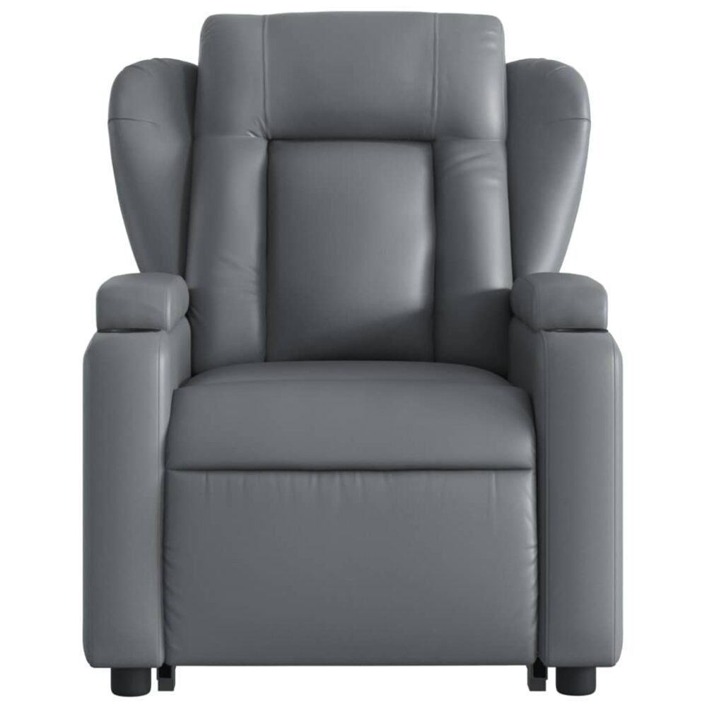 Poltrona reclinável elevatória couro artificial cinzento - PORTES GRÁTIS