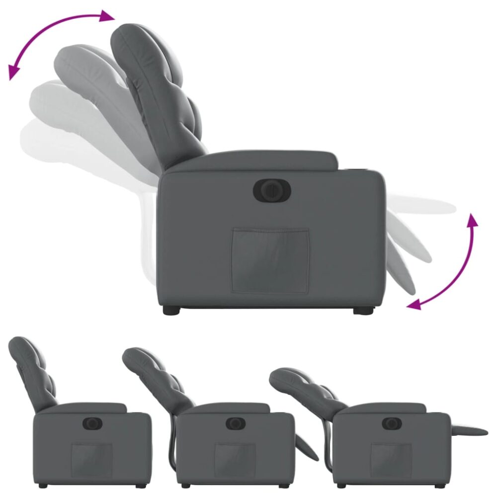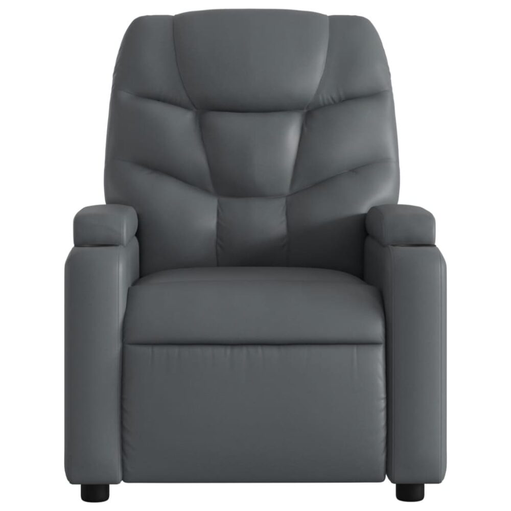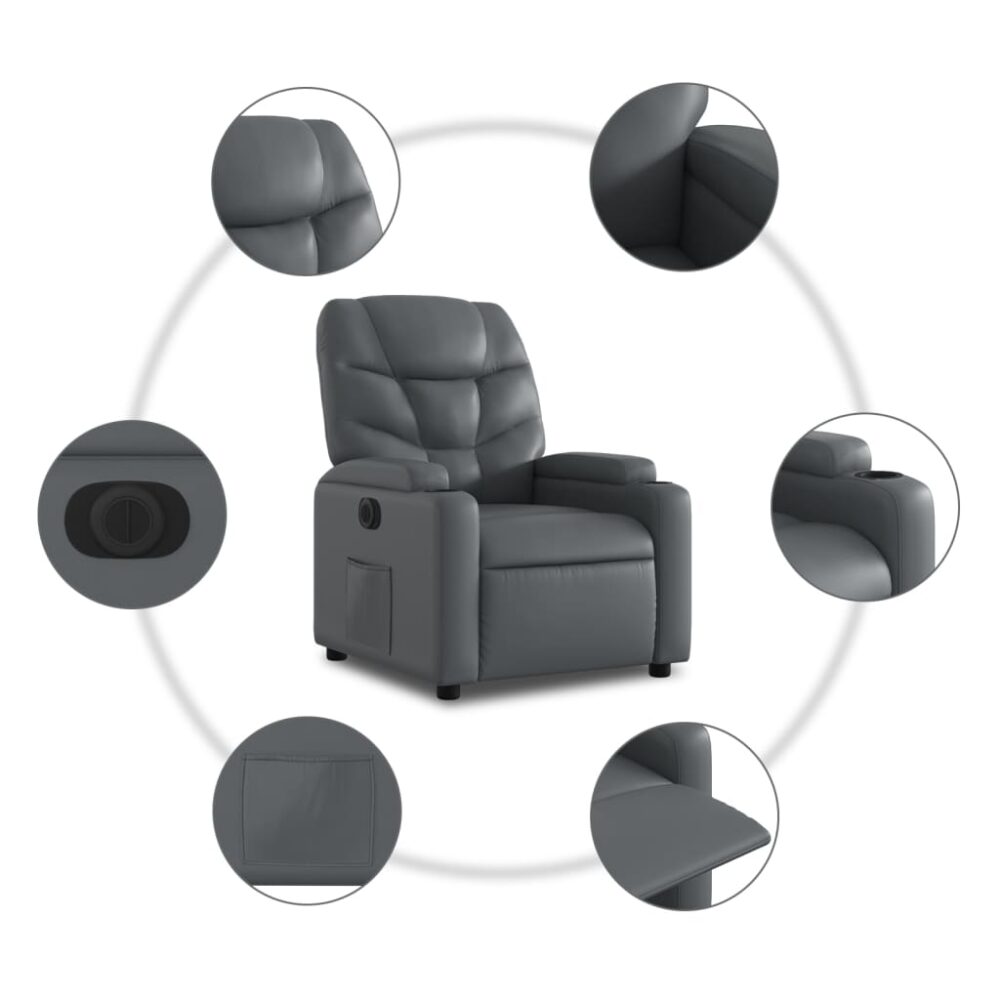 Poltrona reclinável elevatória elétrica couro artif. cinzento - PORTES GRÁTIS