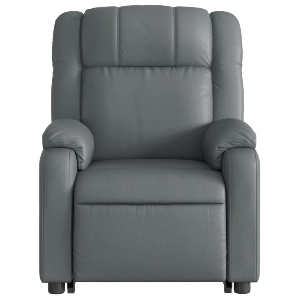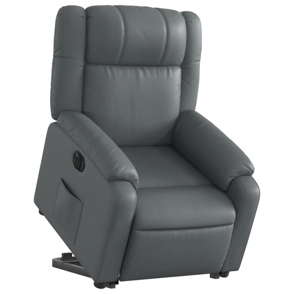Sente-se e relaxe nesta poltrona reclinável elevatória elétrica altamente confortável! Função elevatória: a poltrona reclinável para idosos está equipada com um motor elétrico para a função de elevação. Graças à função que empurra toda a poltrona para cima, pode facilmente levantar-se sem criar desconforto às suas costas e joelhos com o simples premir de um botão.Função de reclinação elétrica: esta poltrona reclinável está também equipada com um motor elétrico que permite ajustar automaticamente o encosto e o apoio de pés para qualquer posição, de acordo com as suas necessidades de conforto, com um simples toque no botão existente na parte lateral. Este recurso permite uma inclinação máxima de 135 graus. Além disso, o encosto pode voltar para a posição original rápida e facilmente se premir o botão.Experiência de assento confortável: o assento e encosto espessamente acolchoados e os apoios de braços largos cobertos com couro artificial proporcionam uma sensação quente e aconchegante, fazendo-o sentir-se abraçado enquanto está sentado. O couro artificial é um material altamente durável. É resistente a manchas, sendo fácil de limpar com um pano húmido. A superfície suave concede-lhe também um aspeto luxuoso e a beleza do couro genuíno.Bolso lateral conveniente: esta poltrona possui um bolso lateral para que possa manter os seus artigos essenciais ao seu alcance.Estrutura sólida e estável: a estrutura feita de madeira e metal proporciona uma estrutura forte e estável. Esta poltrona reclinável é confortável e durável.