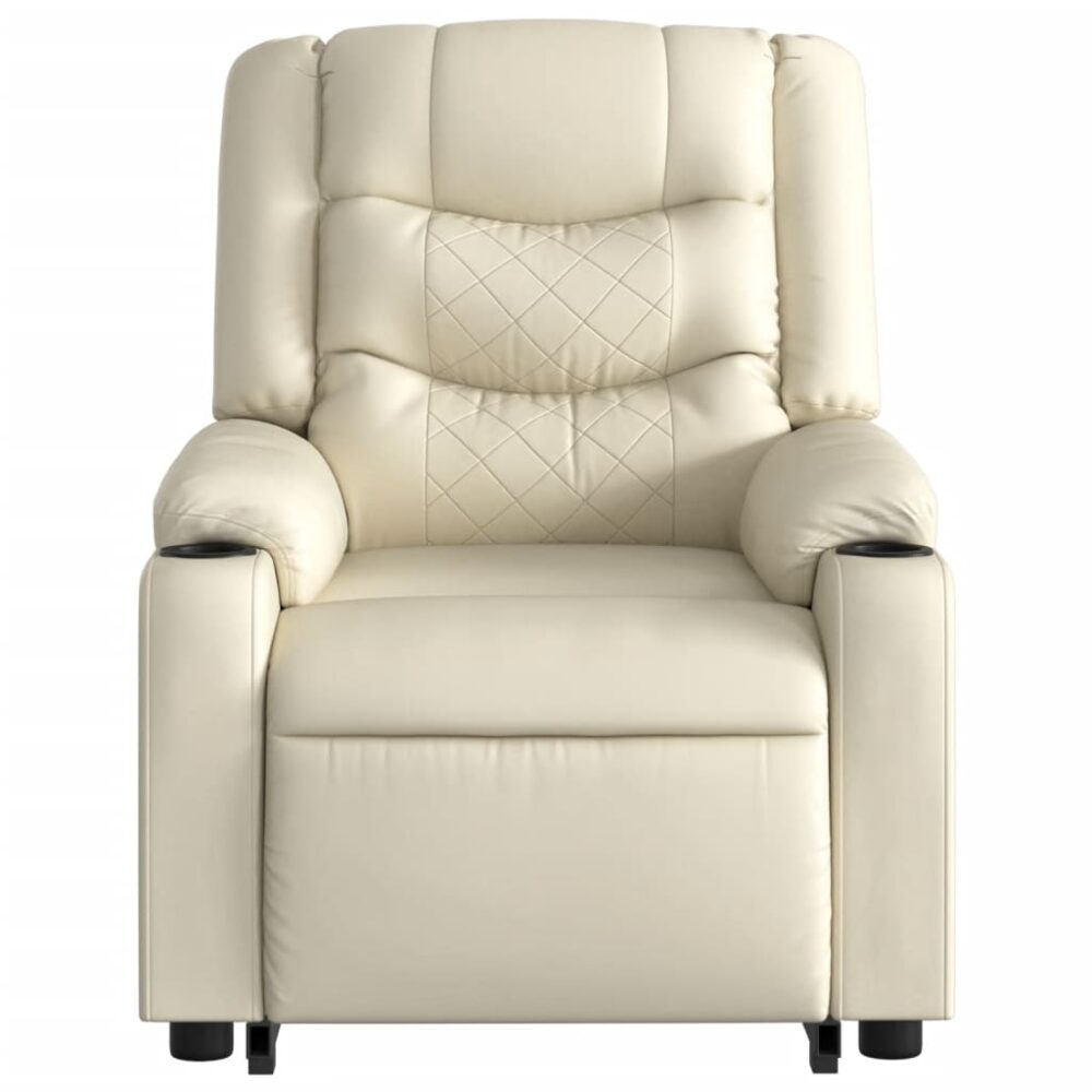 Sente-se e relaxe nesta poltrona reclinável elevatória elétrica altamente confortável! Função elevatória: a poltrona reclinável para idosos está equipada com um motor elétrico para a função de elevação. Graças à função que empurra toda a poltrona para cima, pode facilmente levantar-se sem criar desconforto às suas costas e joelhos com o simples premir de um botão.Função de reclinação elétrica: esta poltrona reclinável está também equipada com um motor elétrico que permite ajustar automaticamente o encosto e o apoio de pés para qualquer posição, de acordo com as suas necessidades de conforto, com um simples toque no botão existente na parte lateral. Este recurso permite uma inclinação máxima de 135 graus. Além disso, o encosto pode voltar para a posição original rápida e facilmente se premir o botão.Experiência de assento confortável: o assento e encosto espessamente acolchoados e os apoios de braços largos cobertos com couro artificial proporcionam uma sensação aconchegante, fazendo-o sentir-se abraçado enquanto está sentado. O couro artificial é um material altamente durável. É resistente a manchas, sendo fácil de limpar com um pano húmido. A superfície suave concede-lhe também um aspeto luxuoso e a beleza do couro genuíno.Bolso lateral conveniente: esta poltrona possui um bolso lateral para que possa manter os seus artigos essenciais ao seu alcance.Estrutura sólida e estável: a estrutura feita de madeira e metal proporciona uma estrutura forte e estável. Esta poltrona reclinável é confortável e durável.