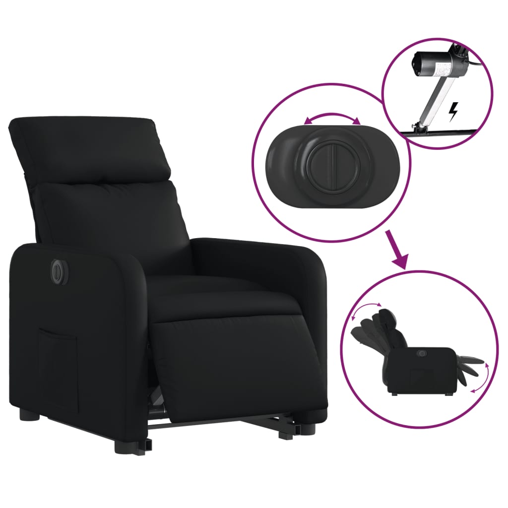 Poltrona reclinável elevatória elétrica couro artificial preto - PORTES GRÁTIS