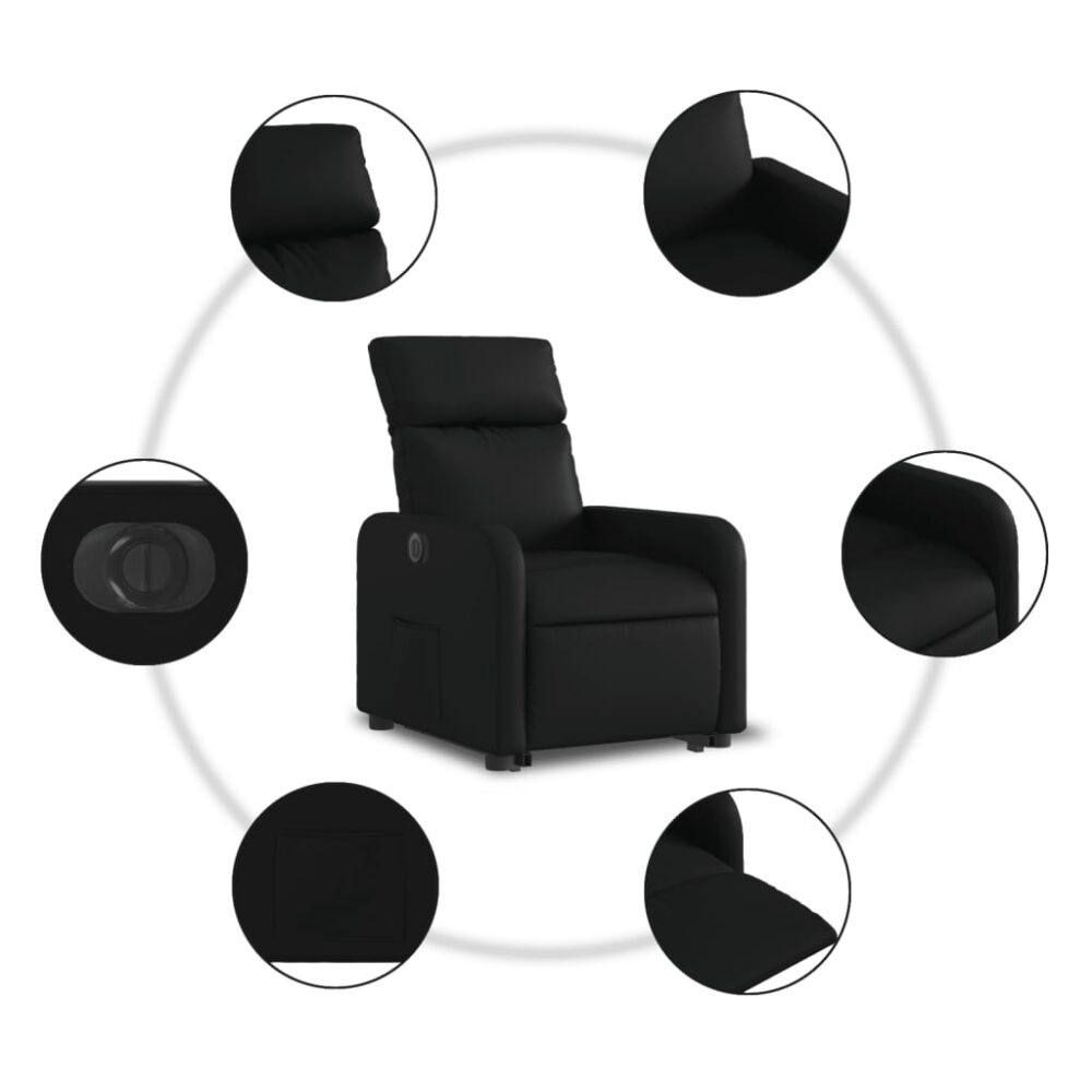 Poltrona reclinável elevatória elétrica couro artificial preto - PORTES GRÁTIS