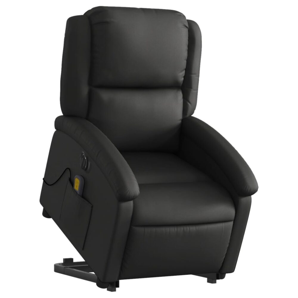 Sente-se e relaxe nesta poltrona reclinável, elevatória e elétrica de massagens altamente confortável! Função elevatória: a poltrona reclinável para idosos está equipada com um motor elétrico para a função de elevação. Graças à função que empurra toda a poltrona para cima, pode facilmente levantar-se sem criar desconforto às suas costas e joelhos com o simples premir de um botão.Função de reclinação elétrica: esta poltrona reclinável está também equipada com um motor elétrico que permite ajustar automaticamente o encosto e o apoio de pés para qualquer posição, de acordo com as suas necessidades de conforto, com um simples toque no botão existente na parte lateral. Este recurso permite uma inclinação máxima de 135 graus. Além disso, o encosto pode voltar para a posição original rápida e facilmente se premir o botão.Função de vibração: os 6 pontos de massagem permitem que experiencie uma massagem mais bem orientada. O controlo manual incluído permite-lhe ainda escolher diferentes programas de massagem. A função de massagens é alimentada pelo conector USB que exige uma fonte de alimentação USB certificada de 5V (não incluída).Experiência de assento confortável: o assento e encosto espessamente acolchoados e os apoios de braços largos cobertos com couro genuíno proporcionam uma sensação quente e aconchegante, fazendo-o sentir-se abraçado enquanto está sentado. O couro genuíno é um material natural intemporal. Pode durar uma vida inteira com o cuidado e manutenção adequados. A superfície suave também lhe concede um aspeto elegante, enquanto assegura um ótimo conforto.Bolso lateral conveniente: esta poltrona possui um bolso lateral para o seu controlo remoto ou para manter os seus artigos essenciais ao alcance.Estrutura sólida e estável: a estrutura feita de madeira e metal proporciona uma estrutura forte e estável. Esta poltrona reclinável é confortável e durável.