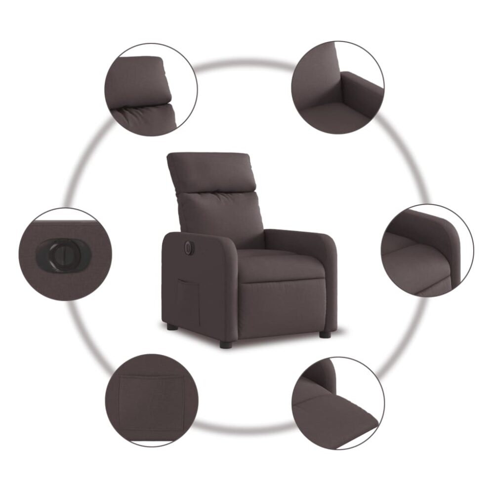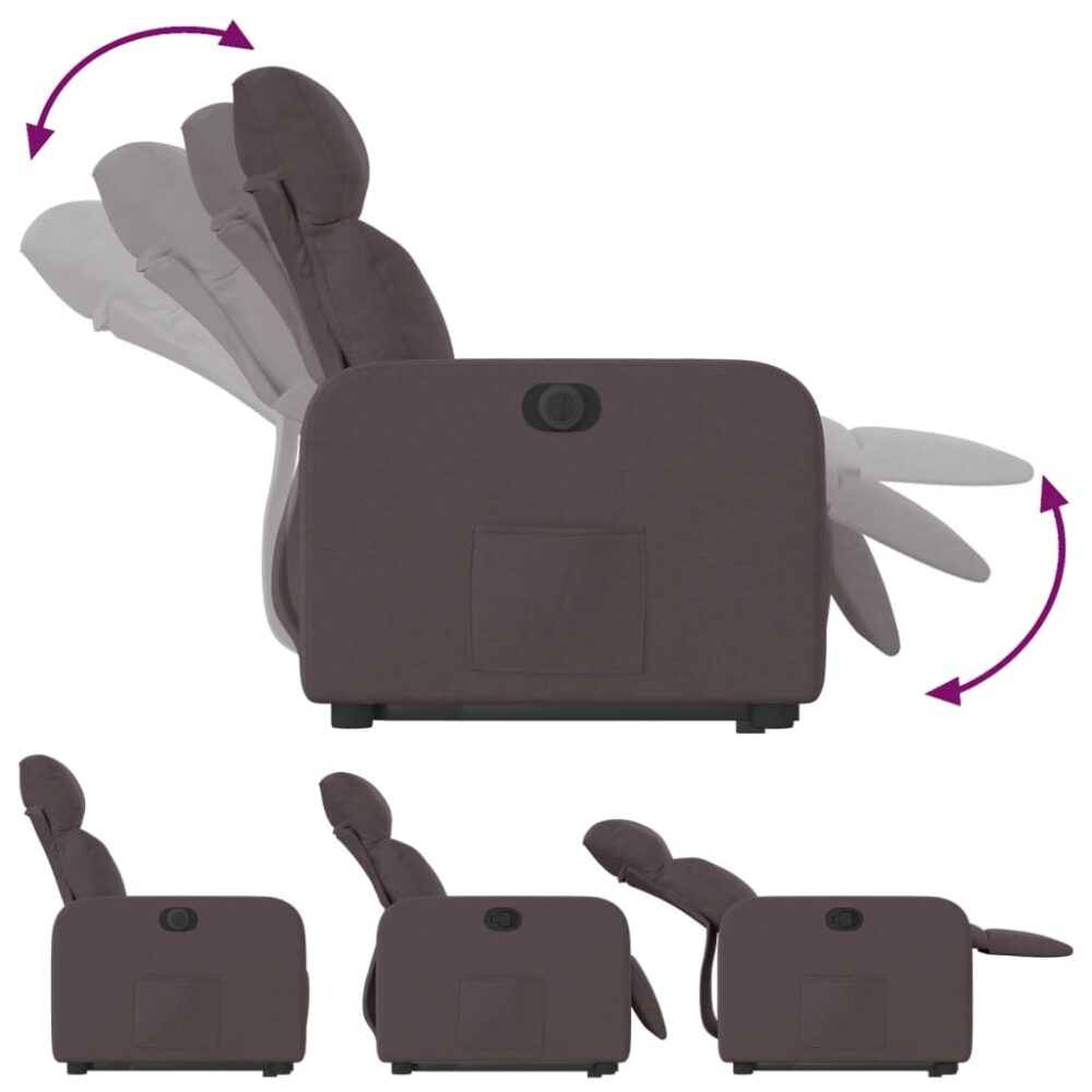 Poltrona reclinável elevatória elétrica tecido castanho-escuro - PORTES GRÁTIS