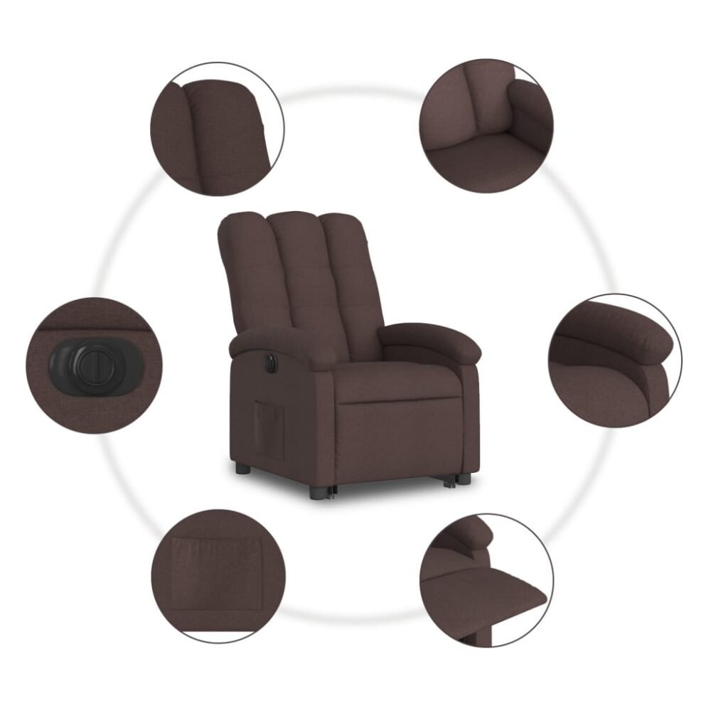 Poltrona reclinável elevatória elétrica tecido castanho-escuro - PORTES GRÁTIS