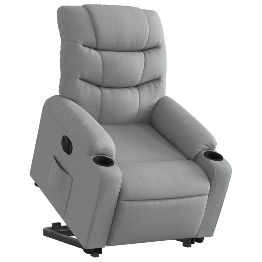 Poltrona reclinável elevatória elétrica tecido cinzento-claro - PORTES GRÁTIS