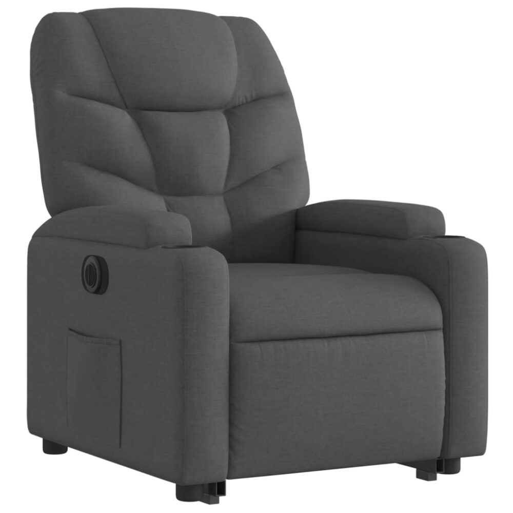Poltrona reclinável elevatória elétrica tecido cinzento-escuro - PORTES GRÁTIS