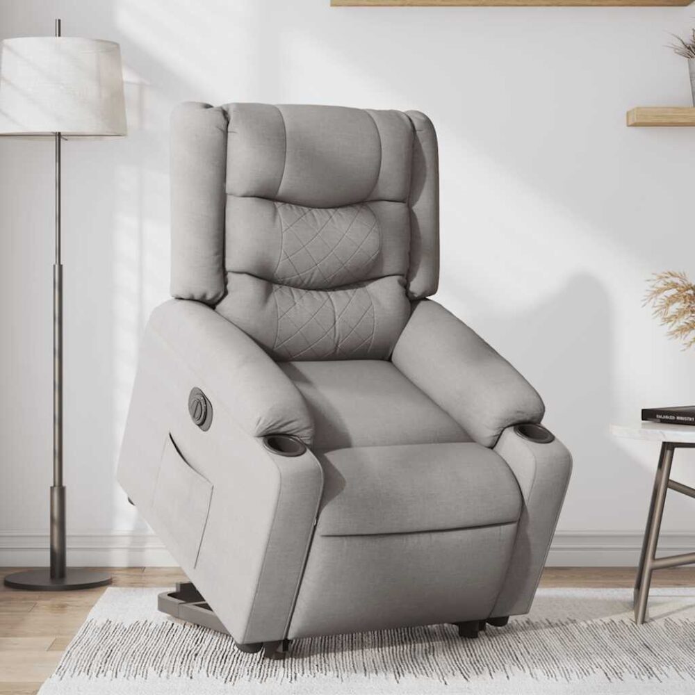 Poltrona reclinável elevatória elétrica tecido cinzento-nublado - PORTES GRÁTIS
