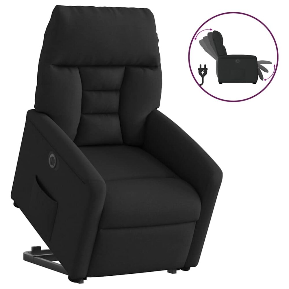 Poltrona reclinável elevatória elétrica tecido preto - PORTES GRÁTIS