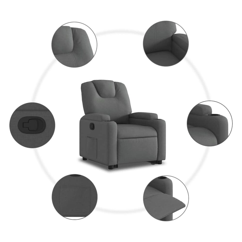 Poltrona reclinável elevatória tecido cinzento-escuro - PORTES GRÁTIS