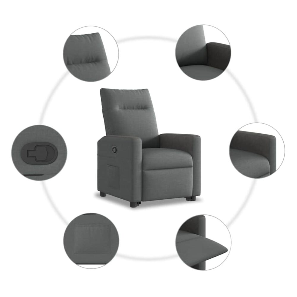 Poltrona reclinável elevatória tecido cinzento-escuro - PORTES GRÁTIS