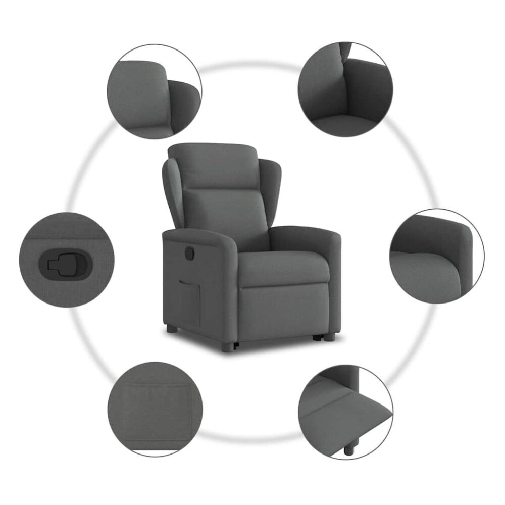 Poltrona reclinável elevatória tecido cinzento-escuro - PORTES GRÁTIS
