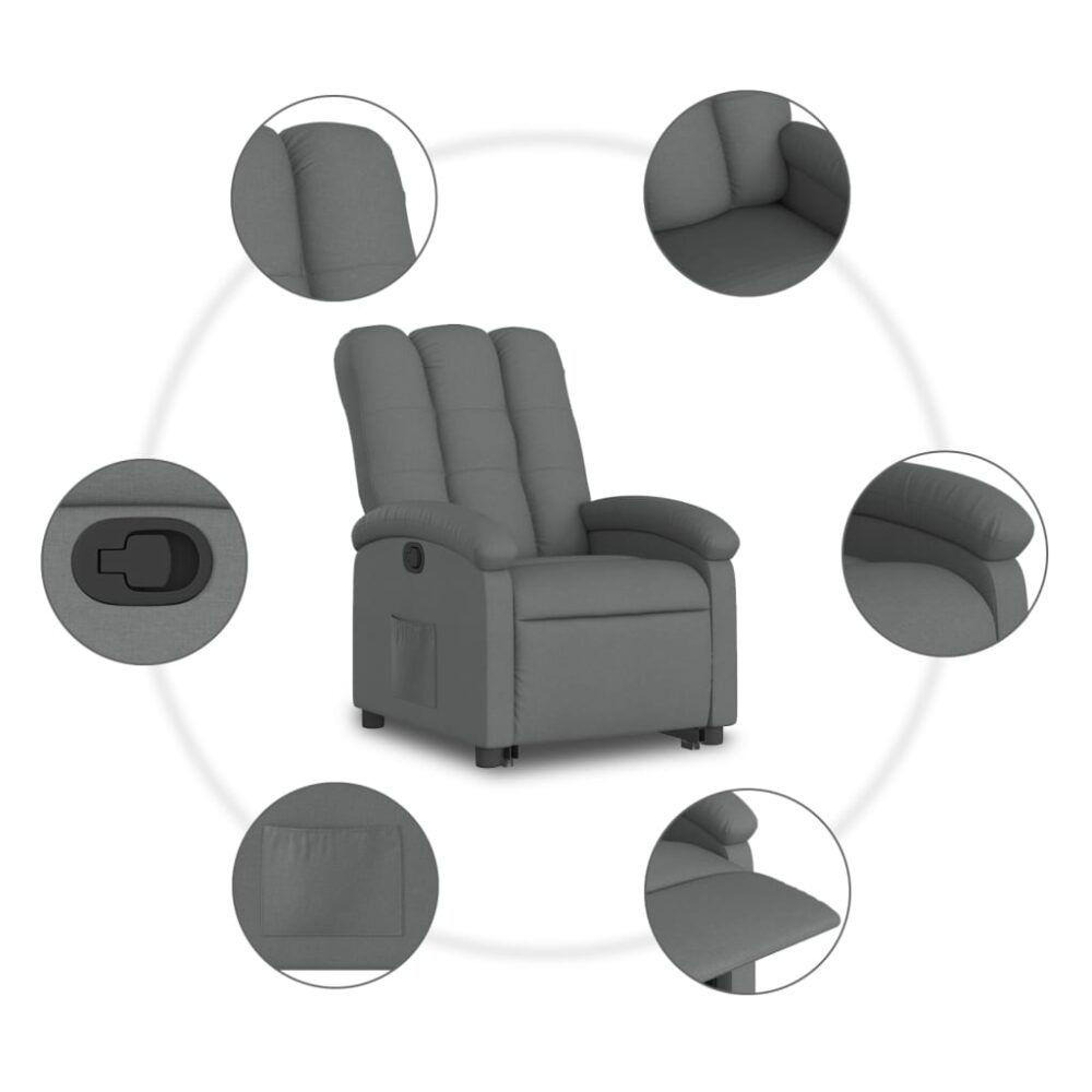 Poltrona reclinável elevatória tecido cinzento-escuro - PORTES GRÁTIS