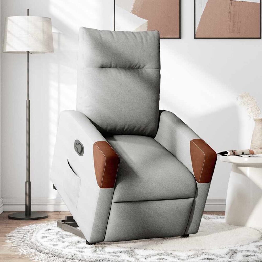 Poltrona reclinável elevatória tecido cinzento-nublado - PORTES GRÁTIS