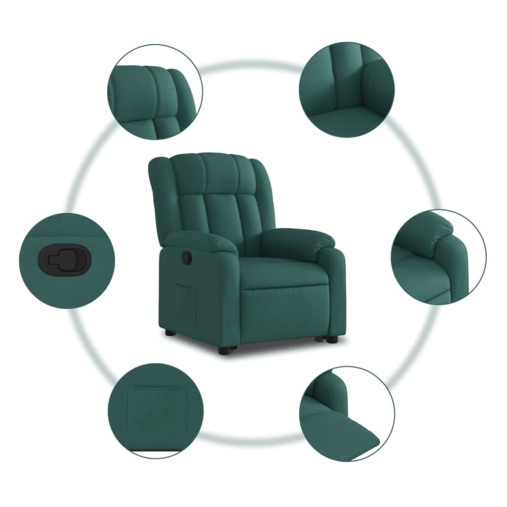 Poltrona reclinável elevatória tecido verde-escuro - PORTES GRÁTIS