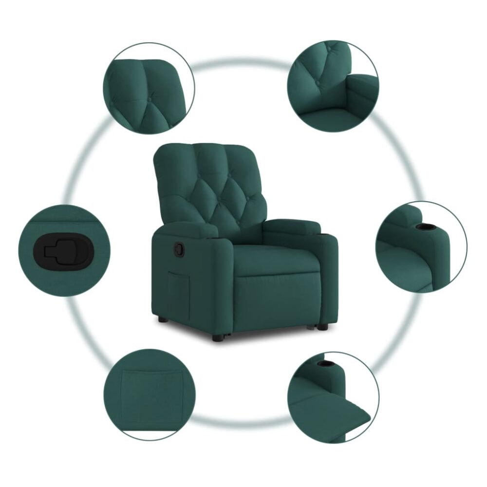 Poltrona reclinável elevatória tecido verde-escuro - PORTES GRÁTIS