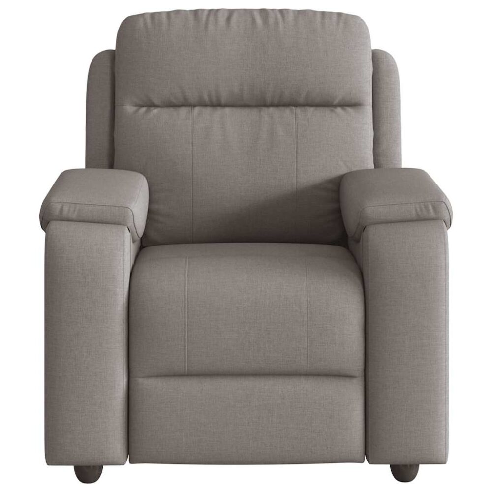 Sente-se e relaxe nesta poltrona reclinável altamente confortável! Função de reclinação manual: esta poltrona reclinável possui uma pega no lado direito. Pode ajustar manualmente o encosto e o apoio de pés em qualquer posição, de acordo com as suas necessidades de conforto, ao puxar a pega. Este recurso permite uma inclinação máxima de 135 graus. Além disso, o encosto pode voltar para a posição original rápida e facilmente se puxar a pega.Experiência de assento confortável: o assento e encosto espessamente acolchoados e os apoios de braços largos cobertos de tecido proporcionam uma sensação quente e aconchegante, fazendo-o sentir-se abraçado enquanto está sentado. O tecido apresenta um aspeto simples e liso, sendo também respirável e durável.Bolso lateral conveniente: esta poltrona possui um bolso lateral para que possa manter os seus artigos essenciais ao seu alcance.Estrutura sólida e estável: a estrutura feita de madeira e metal proporciona uma estrutura forte e estável. Esta poltrona reclinável é confortável e durável.