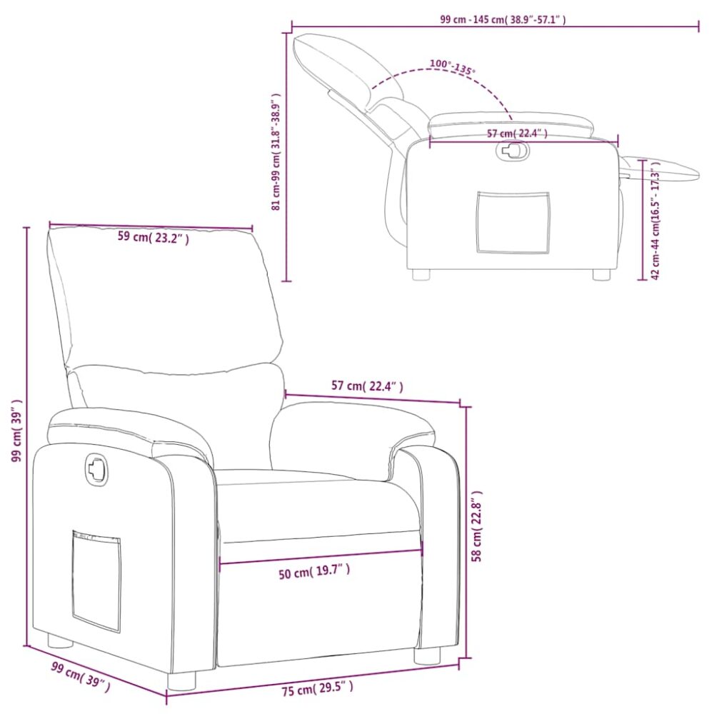 Sente-se e relaxe nesta poltrona reclinável altamente confortável! Função de reclinação manual: esta poltrona reclinável possui uma pega no lado direito. Pode ajustar manualmente o encosto e o apoio de pés em qualquer posição, de acordo com as suas necessidades de conforto, ao puxar a pega. Este recurso permite uma inclinação máxima de 135 graus. Além disso, o encosto pode voltar para a posição original rápida e facilmente se puxar a pega.Experiência de assento confortável: o assento e encosto espessamente acolchoados e os apoios de braços largos cobertos de tecido proporcionam uma sensação quente e aconchegante, fazendo-o sentir-se abraçado enquanto está sentado. O tecido apresenta um aspeto simples e liso, sendo também respirável e durável.Bolso lateral conveniente: esta poltrona possui um bolso lateral para que possa manter os seus artigos essenciais ao seu alcance.Estrutura sólida e estável: a estrutura feita de madeira e metal proporciona uma estrutura forte e estável. Esta poltrona reclinável é confortável e durável. Máximo de 110 kg por assento. Este produto é alimentado por CC 5V, mas a fonte de alimentação USB de 5V certificada não está incluída. Uma tensão mais elevada pode provocar um sobreaquecimento e resultar em danos no dispositivo e no risco potencial de sobreaquecimento e incêndio.
