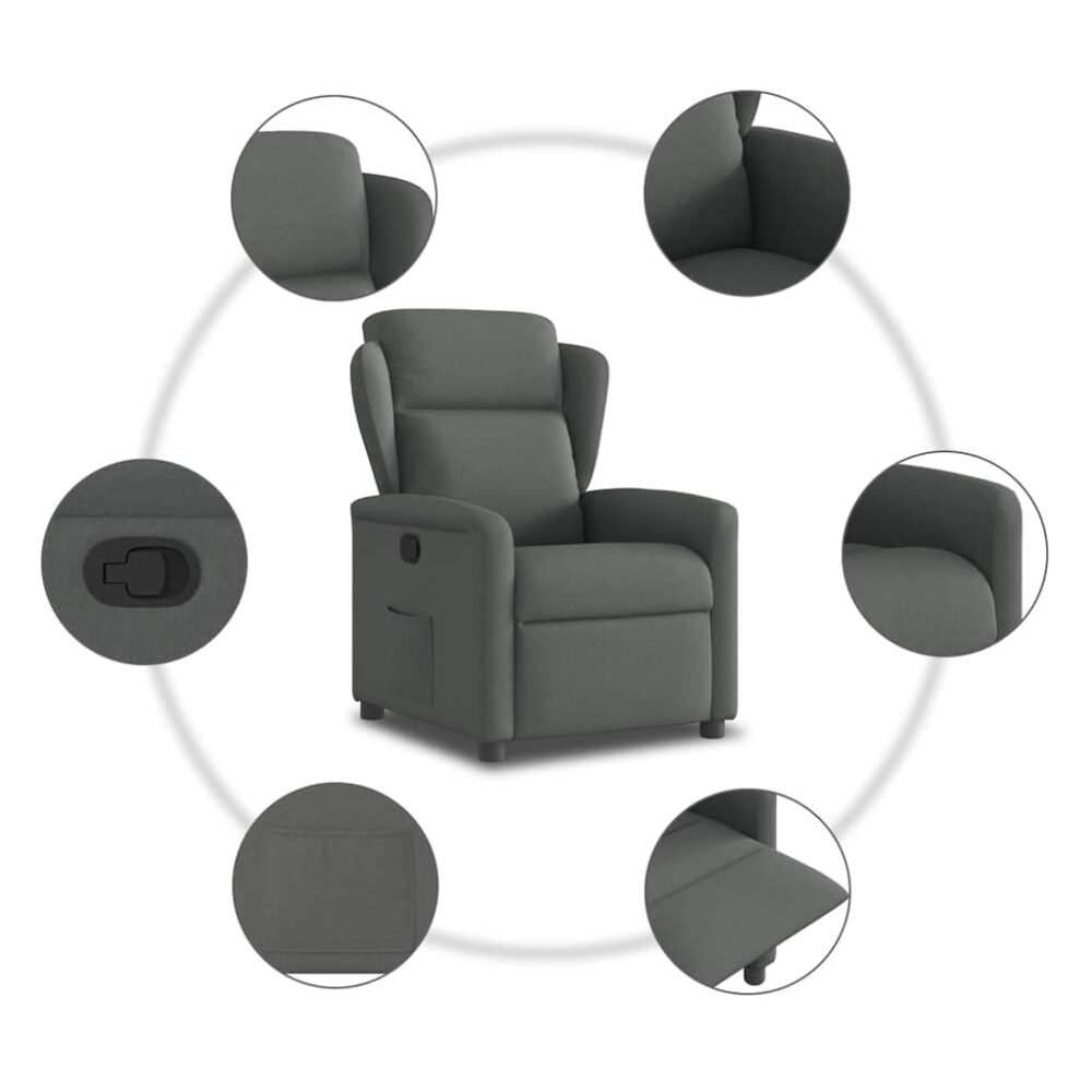 Poltrona reclinável tecido cinzento-escuro - PORTES GRÁTIS