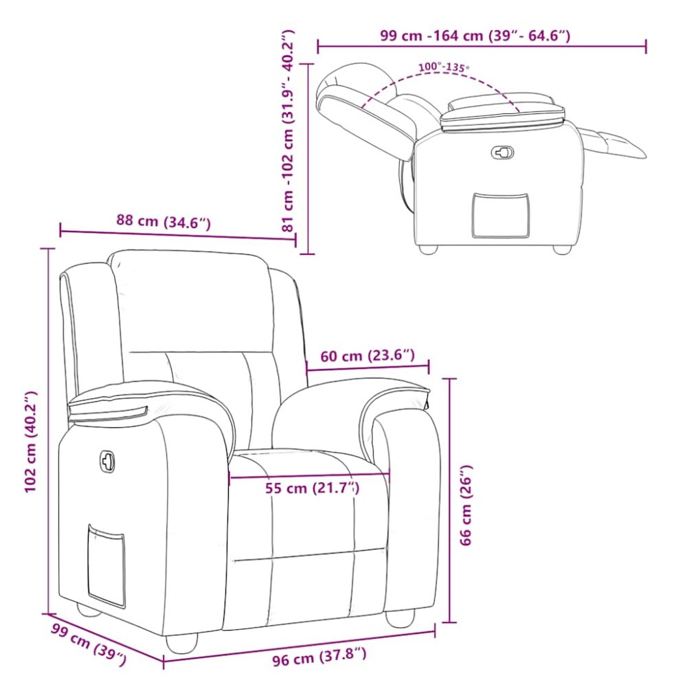 Sente-se e relaxe nesta poltrona reclinável altamente confortável! Função de reclinação manual: esta poltrona reclinável possui uma pega no lado direito. Pode ajustar manualmente o encosto e o apoio de pés em qualquer posição, de acordo com as suas necessidades de conforto, ao puxar a pega. Este recurso permite uma inclinação máxima de 135 graus. Além disso, o encosto pode voltar para a posição original rápida e facilmente se puxar a pega.Experiência de assento confortável: o assento e encosto espessamente acolchoados e os apoios de braços largos cobertos de tecido proporcionam uma sensação quente e aconchegante, fazendo-o sentir-se abraçado enquanto está sentado. O tecido apresenta um aspeto simples e liso, sendo também respirável e durável.Bolso lateral conveniente: esta poltrona possui um bolso lateral para que possa manter os seus artigos essenciais ao seu alcance.Estrutura sólida e estável: a estrutura feita de madeira e metal proporciona uma estrutura forte e estável. Esta poltrona reclinável é confortável e durável.