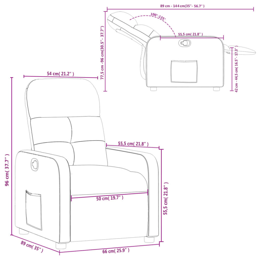 Sente-se e relaxe nesta poltrona reclinável altamente confortável! Função de reclinação manual: esta poltrona reclinável possui uma pega no lado direito. Pode ajustar manualmente o encosto e o apoio de pés em qualquer posição, de acordo com as suas necessidades de conforto, ao puxar a pega. Este recurso permite uma inclinação máxima de 135 graus. Além disso, o encosto pode voltar para a posição original rápida e facilmente se puxar a pega.Experiência de assento confortável: o assento e encosto espessamente acolchoados e os apoios de braços largos cobertos de tecido proporcionam uma sensação quente e aconchegante, fazendo-o sentir-se abraçado enquanto está sentado. O tecido apresenta um aspeto simples e liso, sendo também respirável e durável.Bolso lateral conveniente: esta poltrona possui um bolso lateral para que possa manter os seus artigos essenciais ao seu alcance.Estrutura sólida e estável: a estrutura feita de madeira e metal proporciona uma estrutura forte e estável. Esta poltrona reclinável é confortável e durável. Máximo de 110 kg por assento. Ter em atenção o risco de fogos abertos e outras fontes de calor forte nas proximidades do produto.