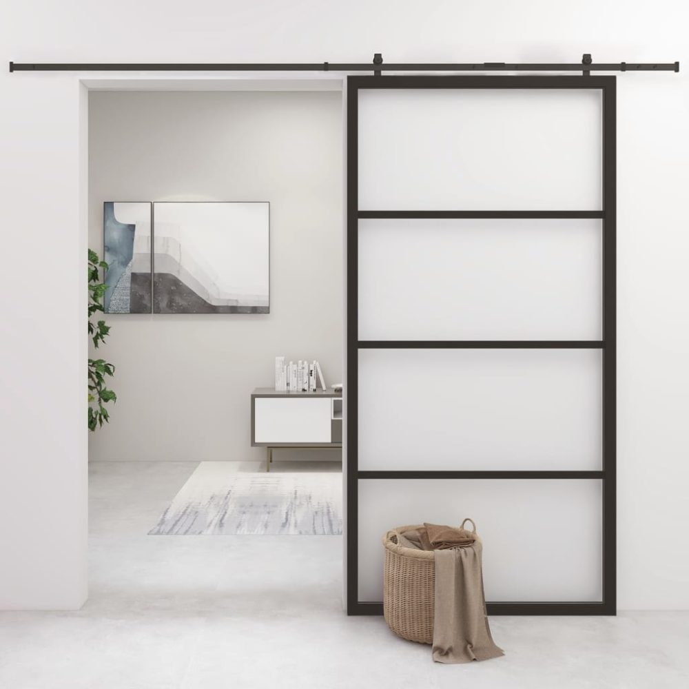 Esta porta de correr apresenta um vidro de segurança com 5 mm de espessura, apoiado por uma estrutura de alumínio que é resistente à corrosão, possui 40 mm de espessura e foi revestida a pó, sendo durável. O painel de vidro é fácil de limpar e cuidar.